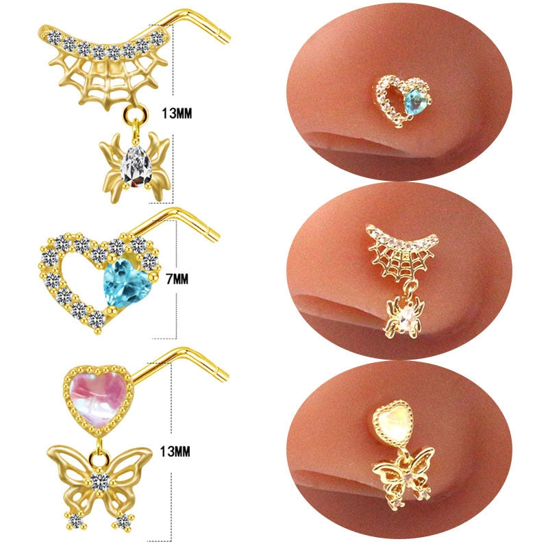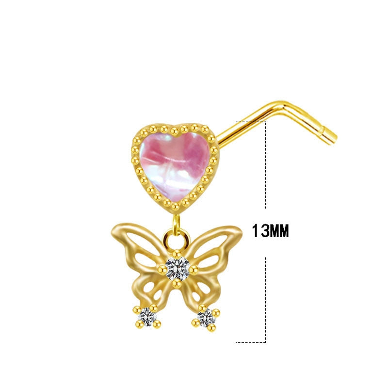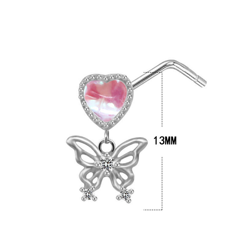Streetwear Heart and Butterfly Shape Stainless Steel Zircon Nose Ring