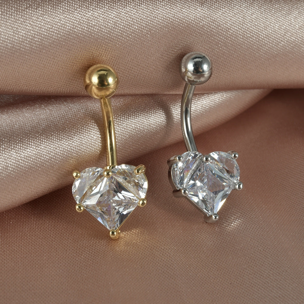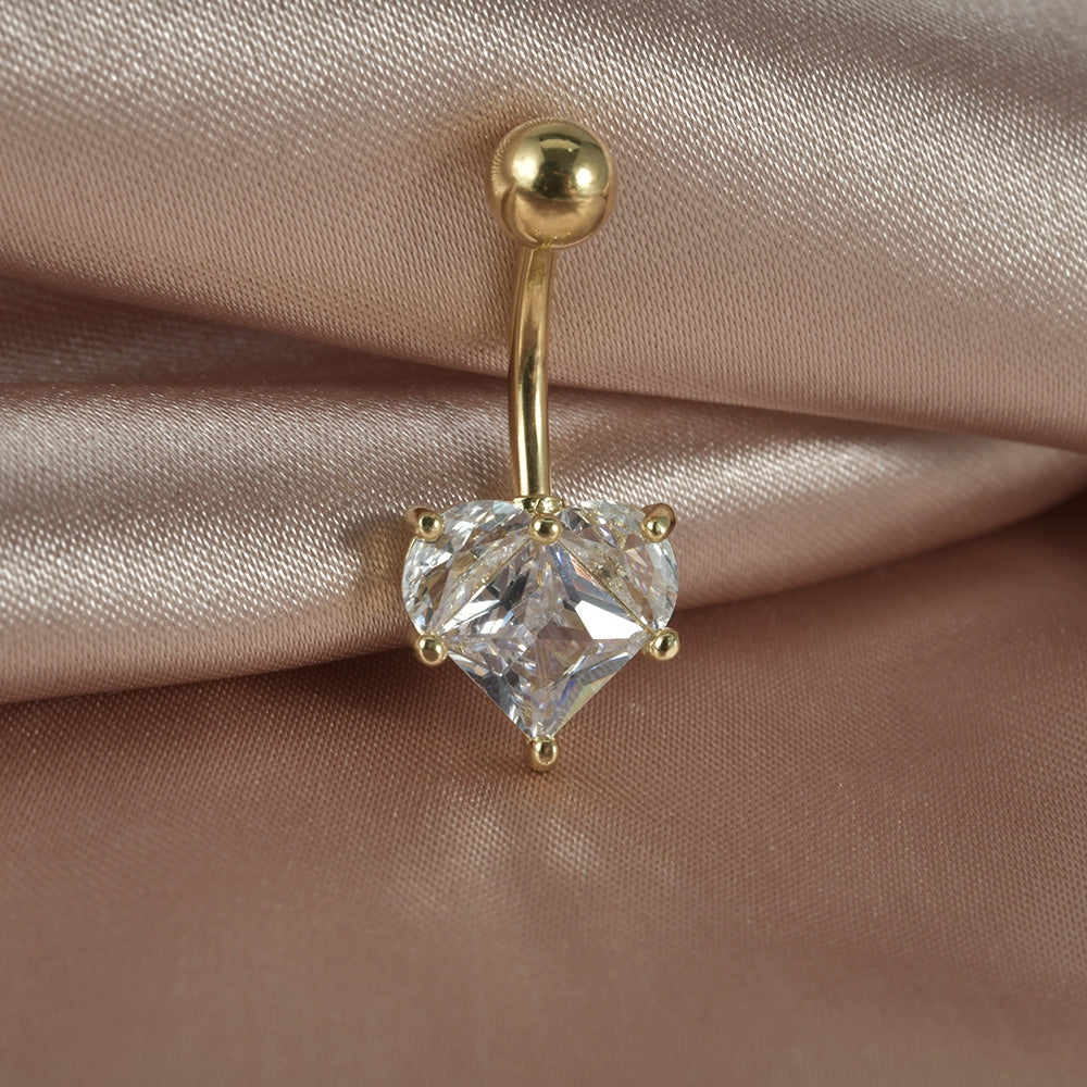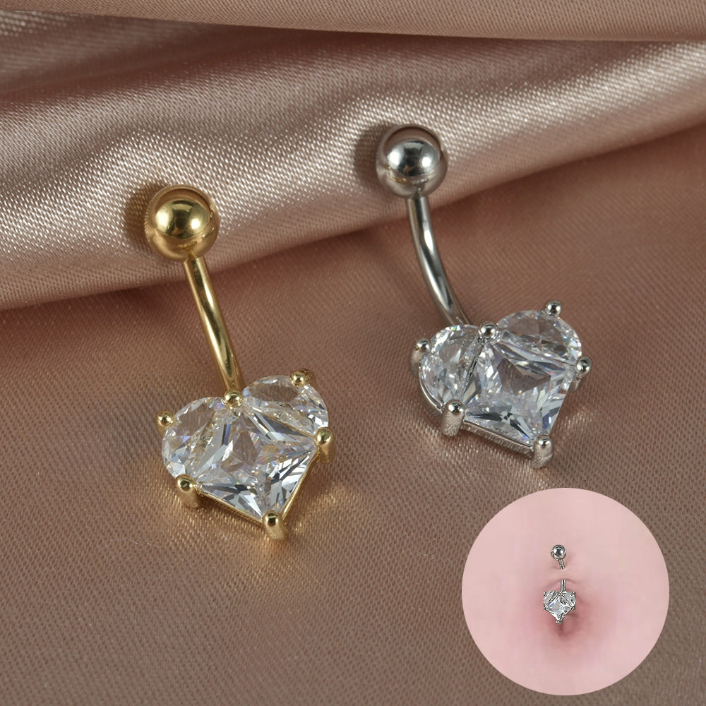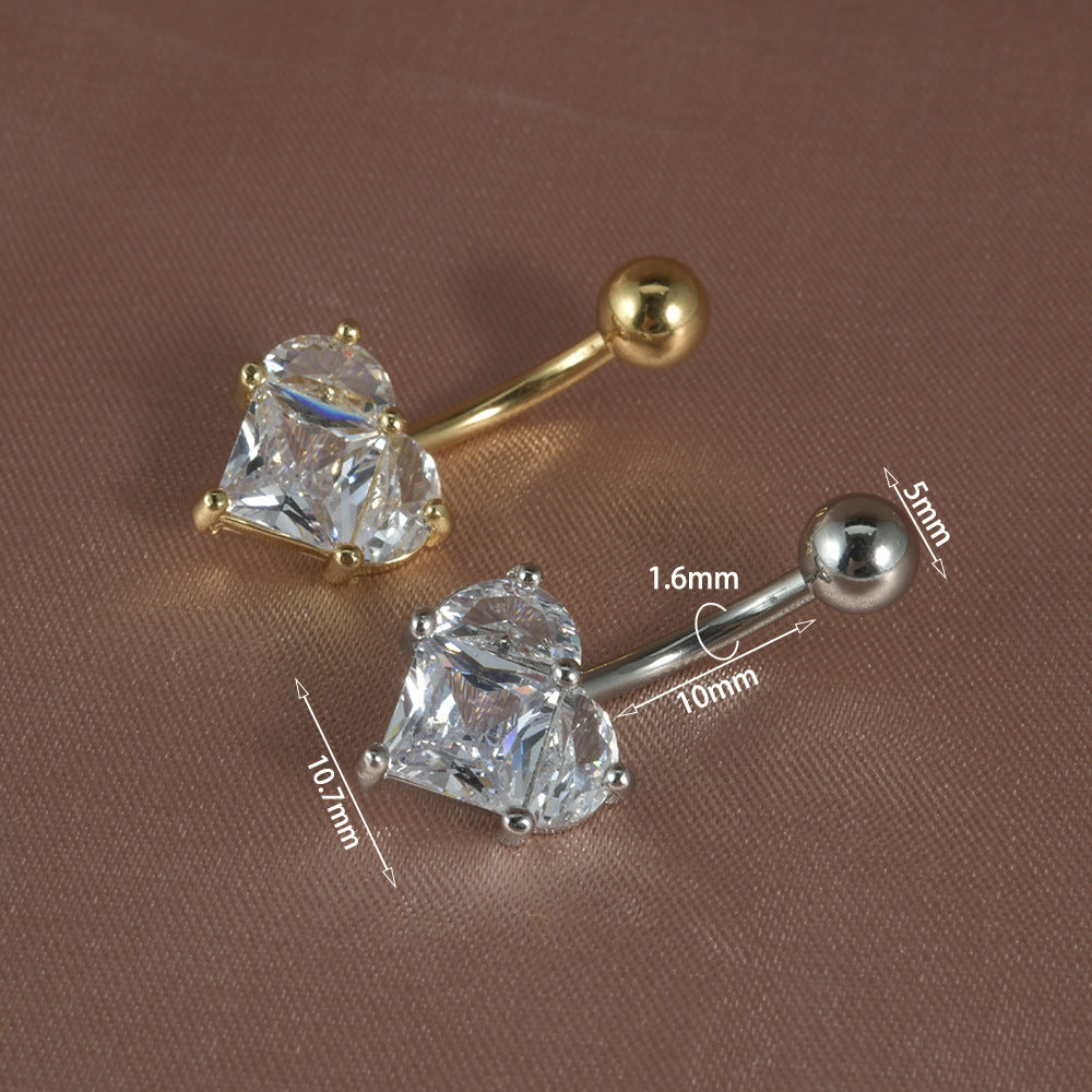 Streetwear Heart Shape Zircon Stainless Steel Belly Ring 14G Piercing Jewelry