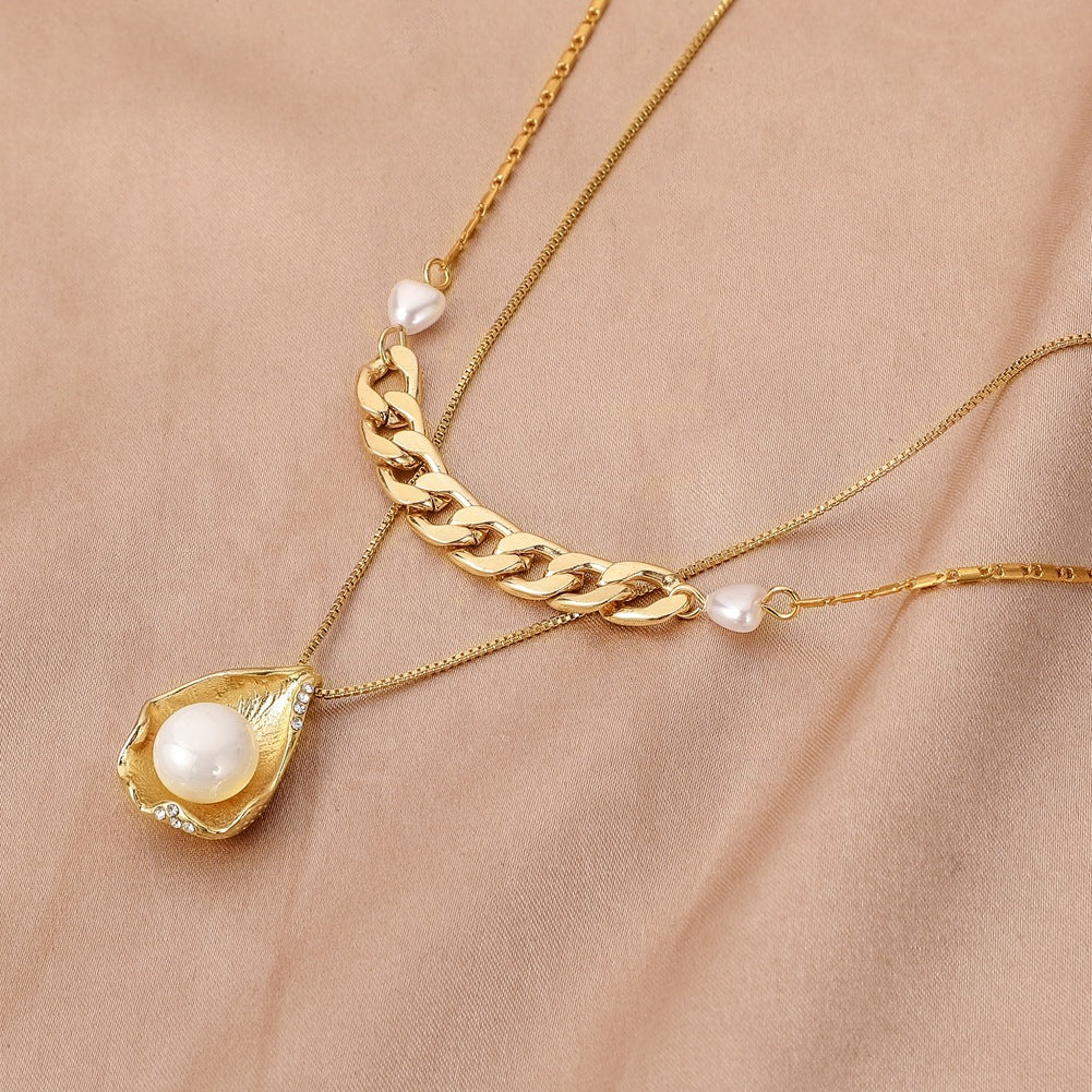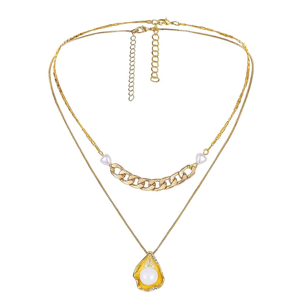 Streetwear Double Layer Heart Shell Pearl Pendant Necklace for Women