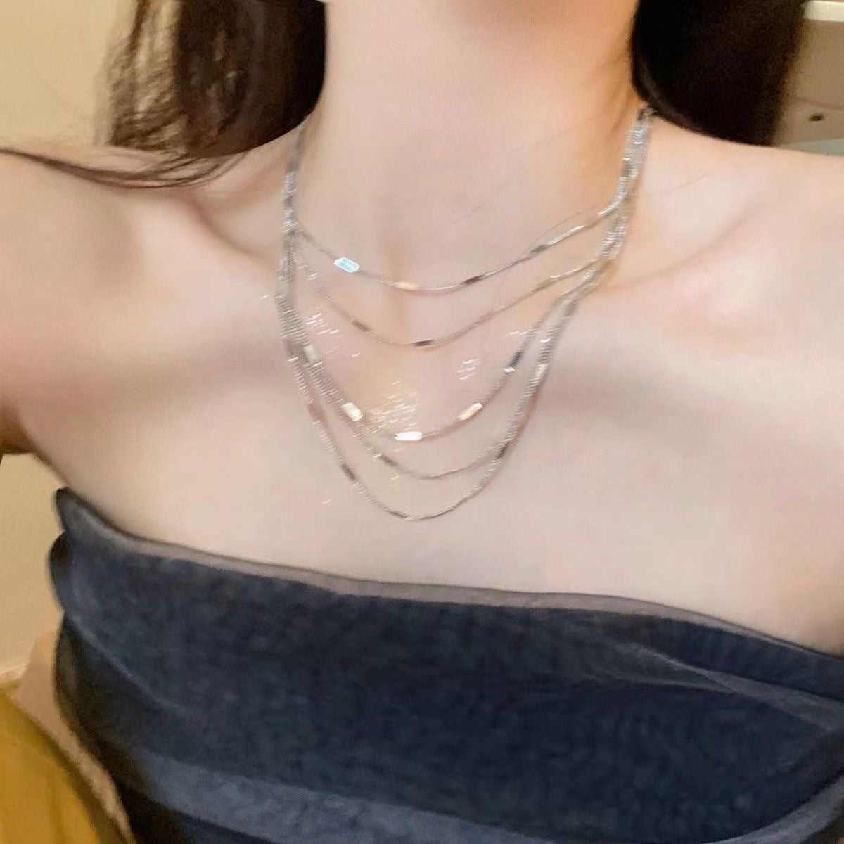 Streetwear Alloy Plated Layered Tassel Necklace for Women