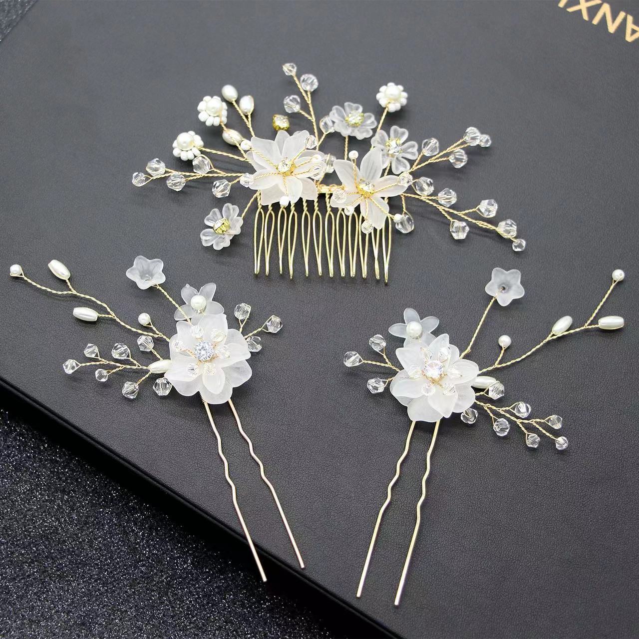 Handmade Bridal Pearl Flower Hair Comb and Pin Set for Wedding Accessories
