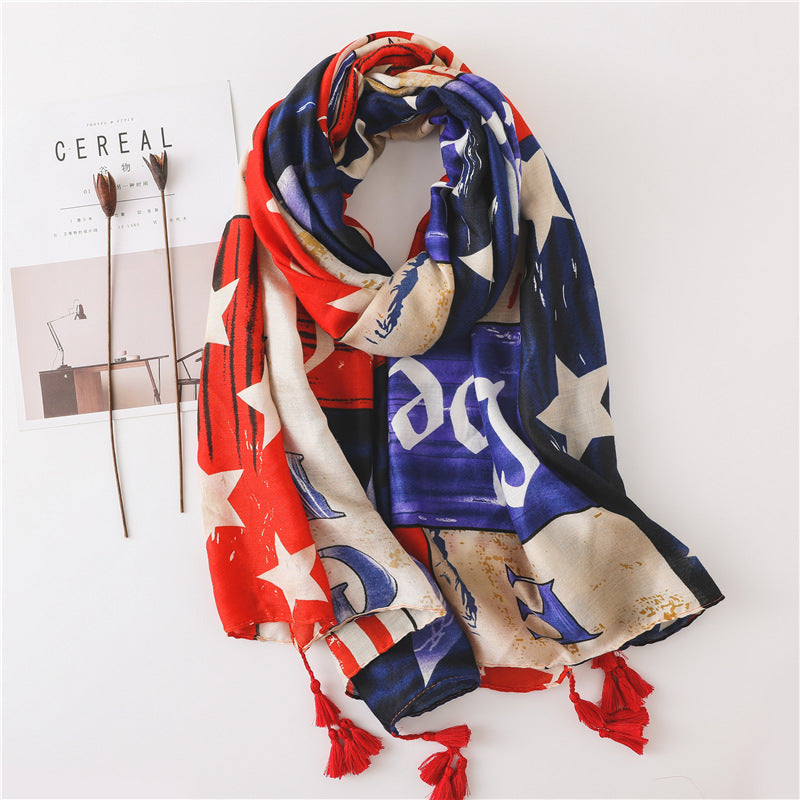 Women's Summer Cotton Linen Silk Scarf with Tassel Print - Sunshade Beach Shawl