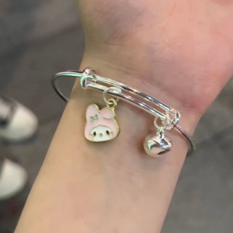 Sweet Cartoon Character Alloy Bangle Bracelet with Bell Charm