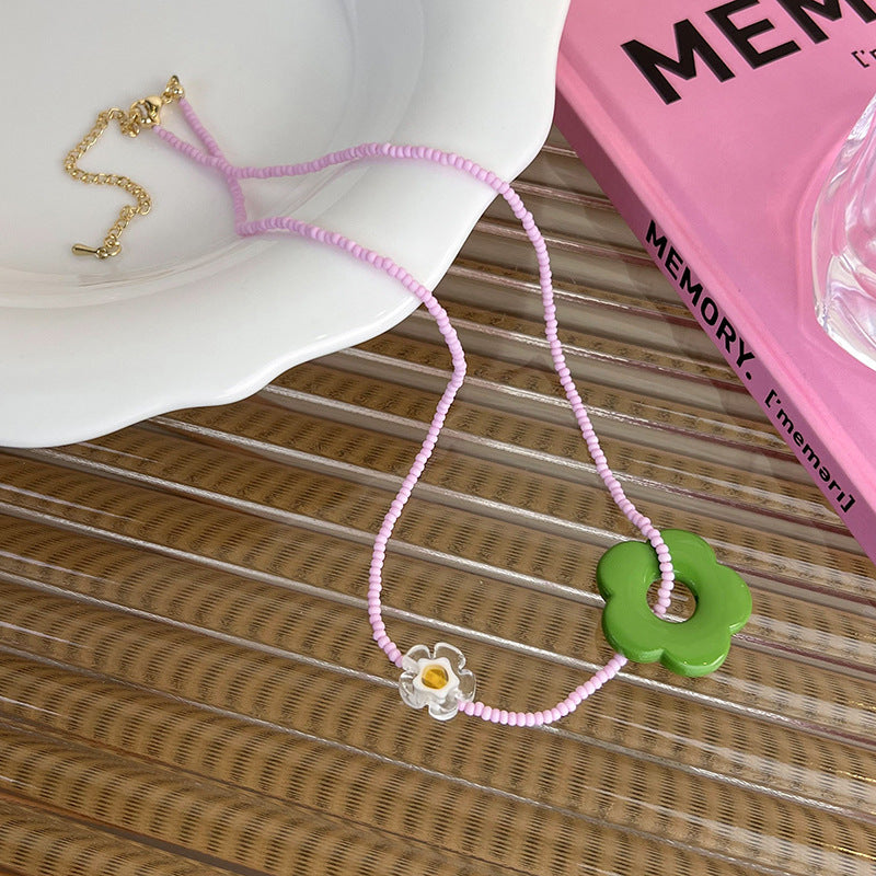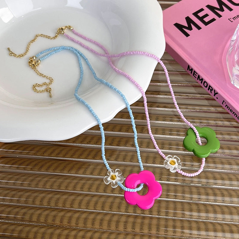 Sweet Flower Acrylic Resin Colorful Beaded Pendant Necklace