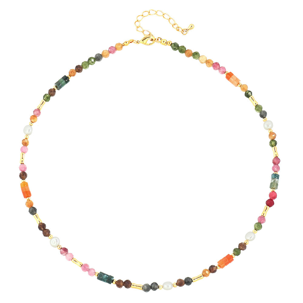 Sweet Geometric Freshwater Pearl Tourmaline Beaded Handmade Necklace