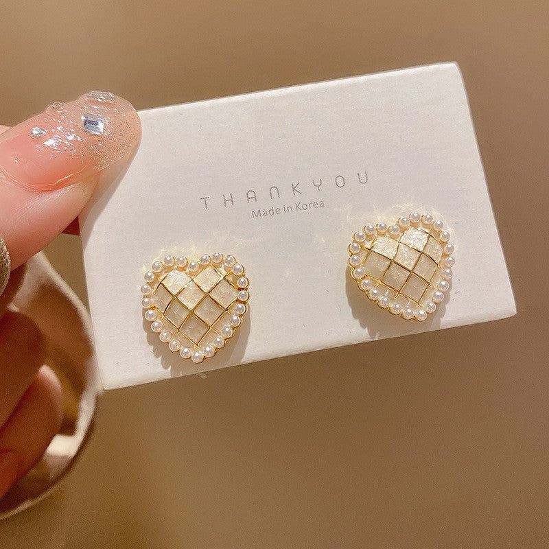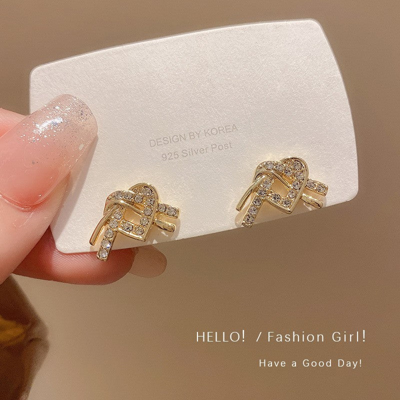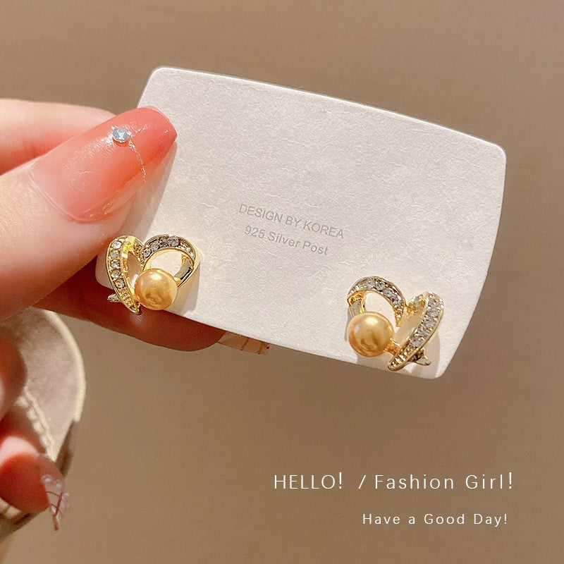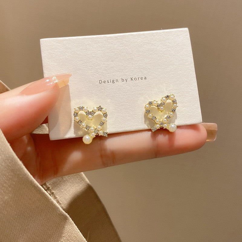 Sweet Heart Bow Knot Copper Inlay Rhinestone Pearl Earrings