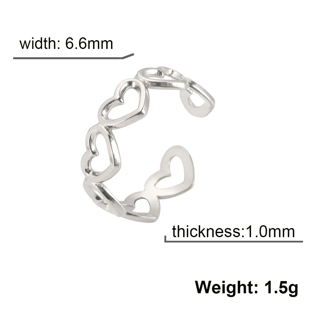 Sweet Heart Hollow Stainless Steel Open Ring - Minimalist Couple Design