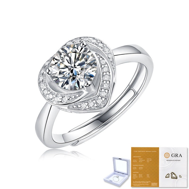 Sweet Heart Moissanite Adjustable Sterling Silver Ring