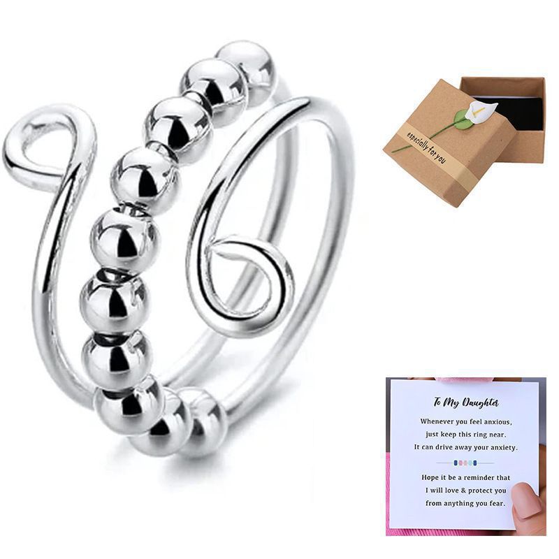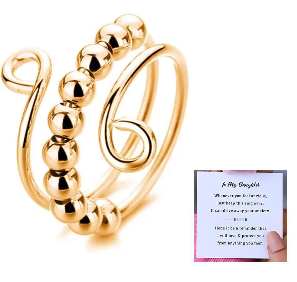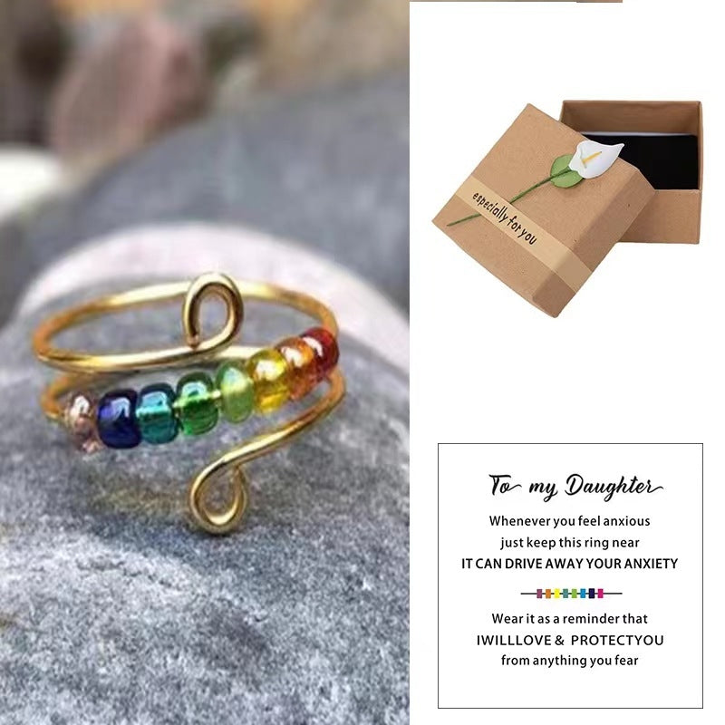 Colorful Beaded Metal Open Ring for Women - Anxiety Relief Spinner Design