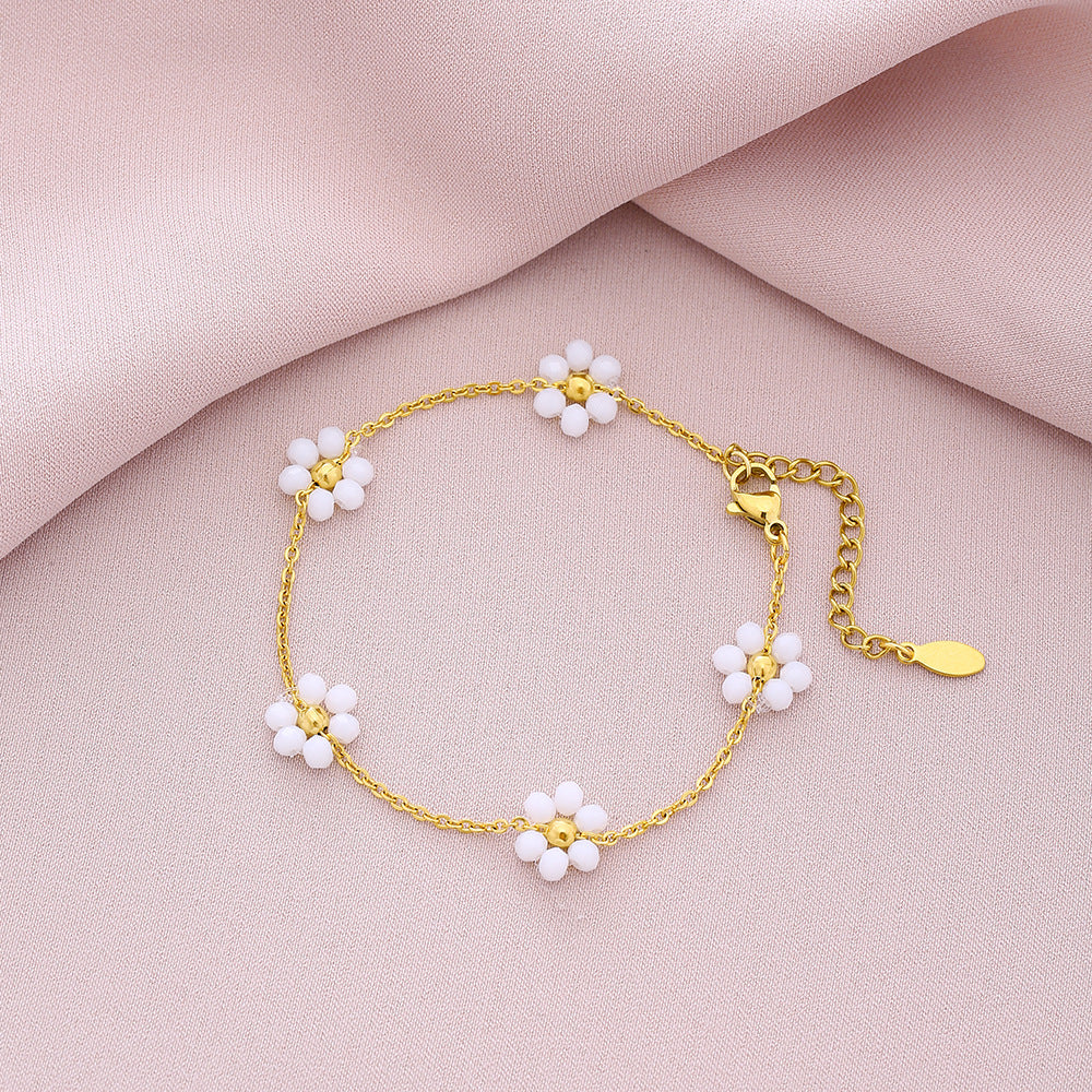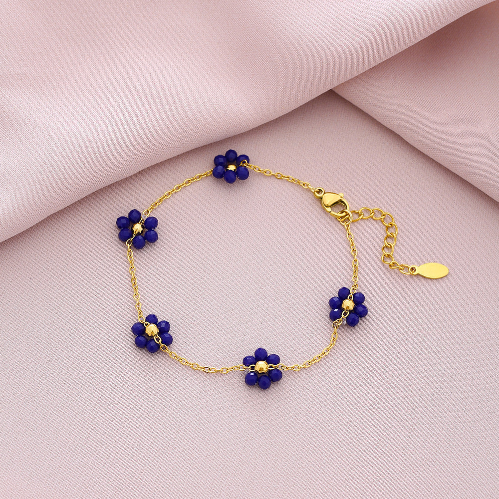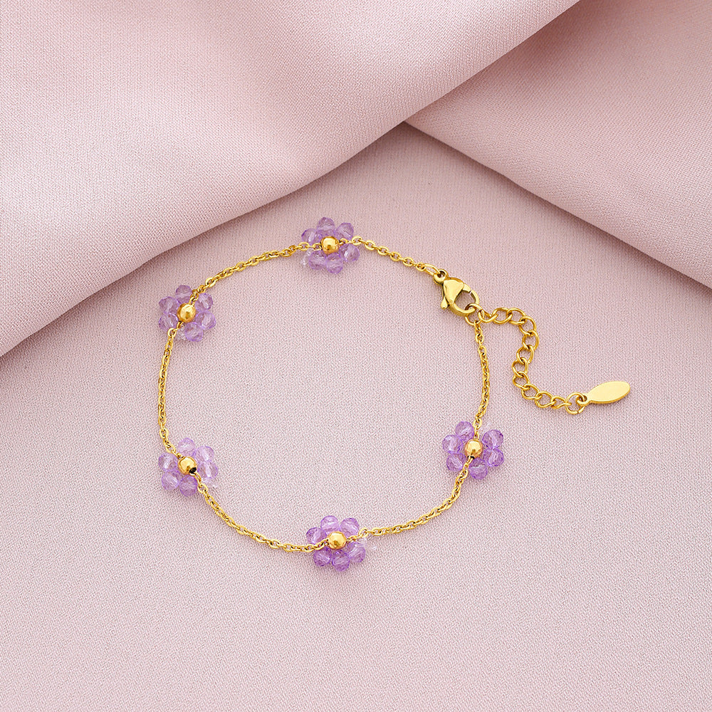 Sweet Shiny Petal 18K Gold Plated Stainless Steel Crystal Bracelets for Couples