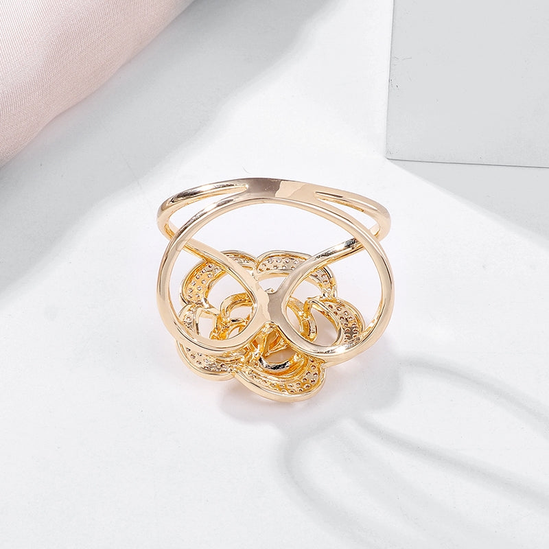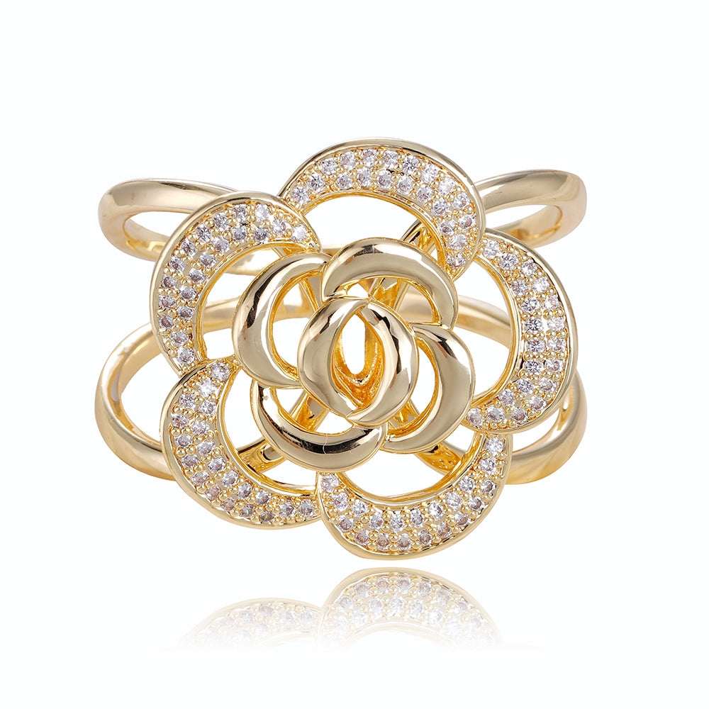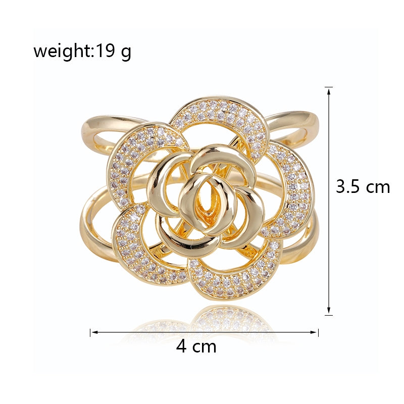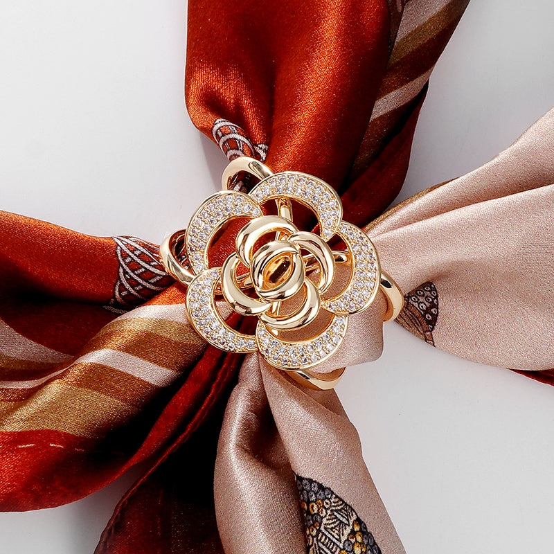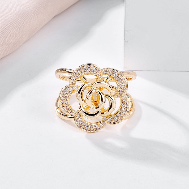 Sweet Camellia Flower Rhinestone Inlay Stainless Steel Scarf and Belt Ring