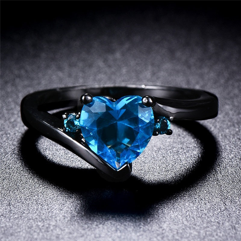 Sweet Heart Shape Blue Gemstone Black Gold Women's Ring