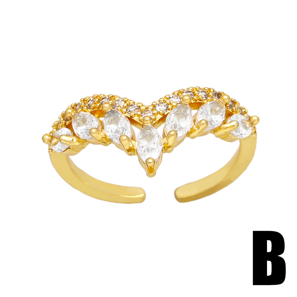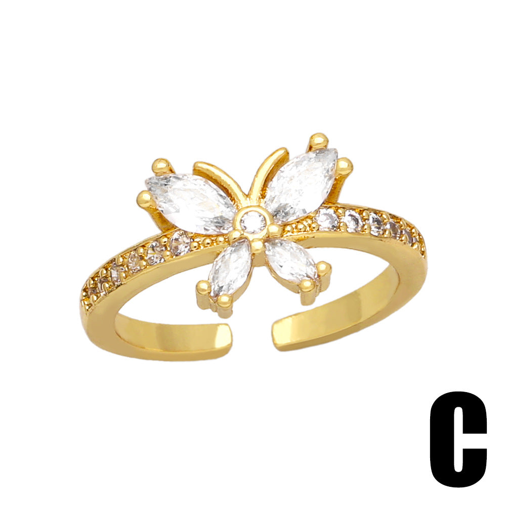 Sweet Simple Heart & Butterfly 18K Gold Plated Open Ring with Zircon Inlay