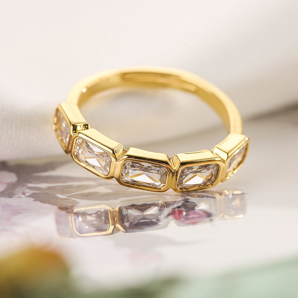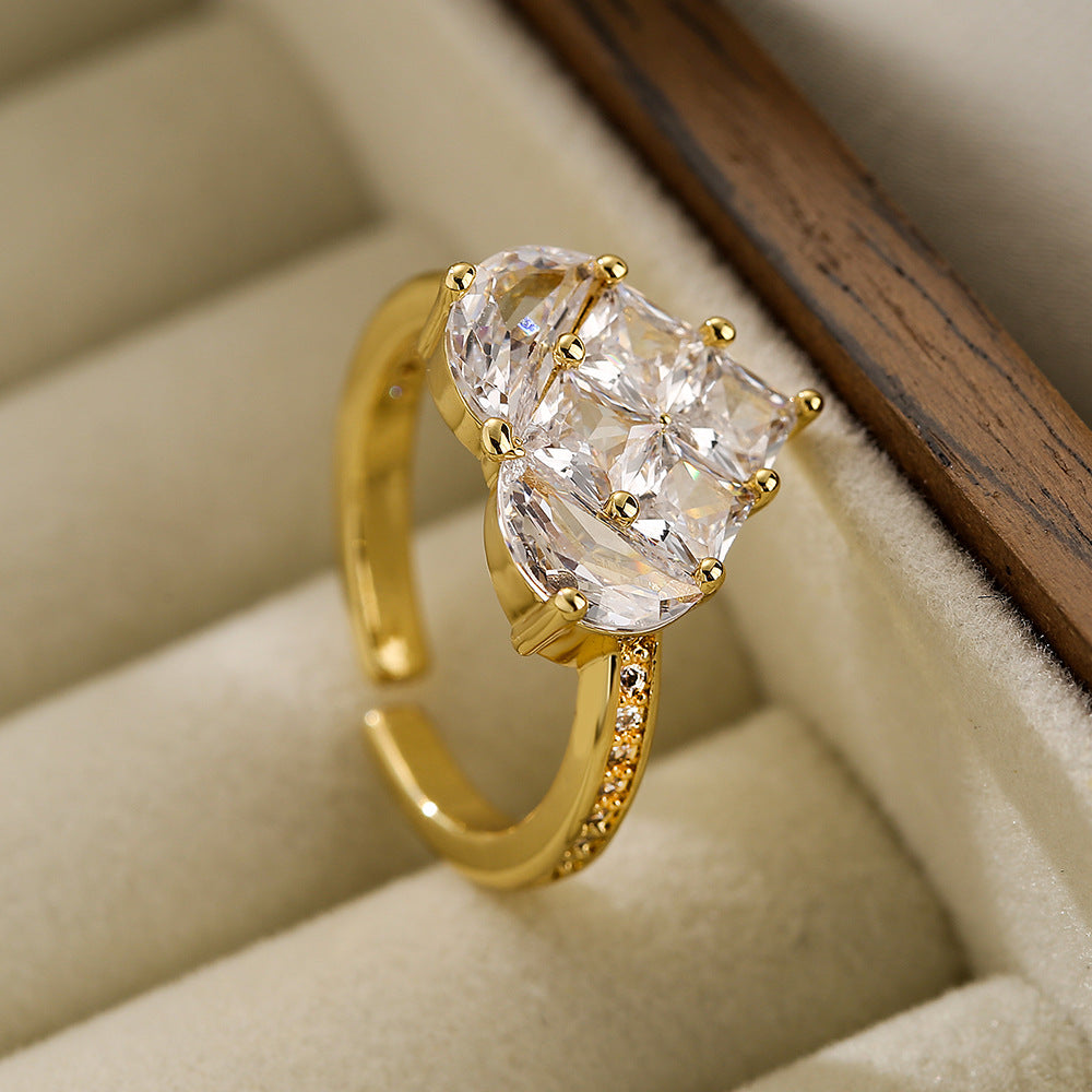 18k Gold Plated Zircon Heart Geometric Open Ring