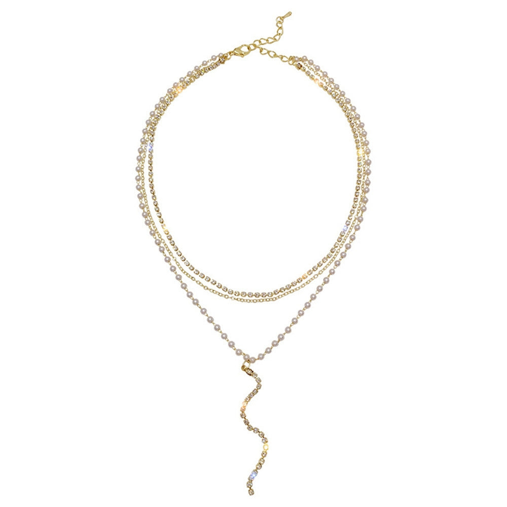 Elegant Layered Rhinestone and Pearl Y-Chain Necklace for Women