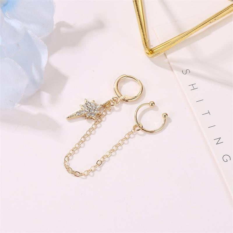 The New Star Tassel Long Earrings with Diamond Ear Cuff