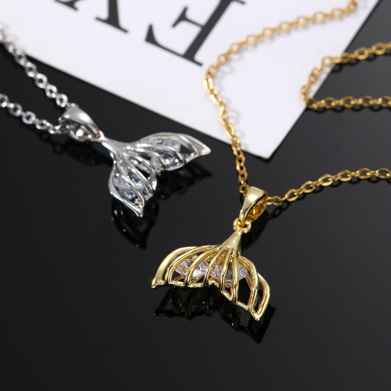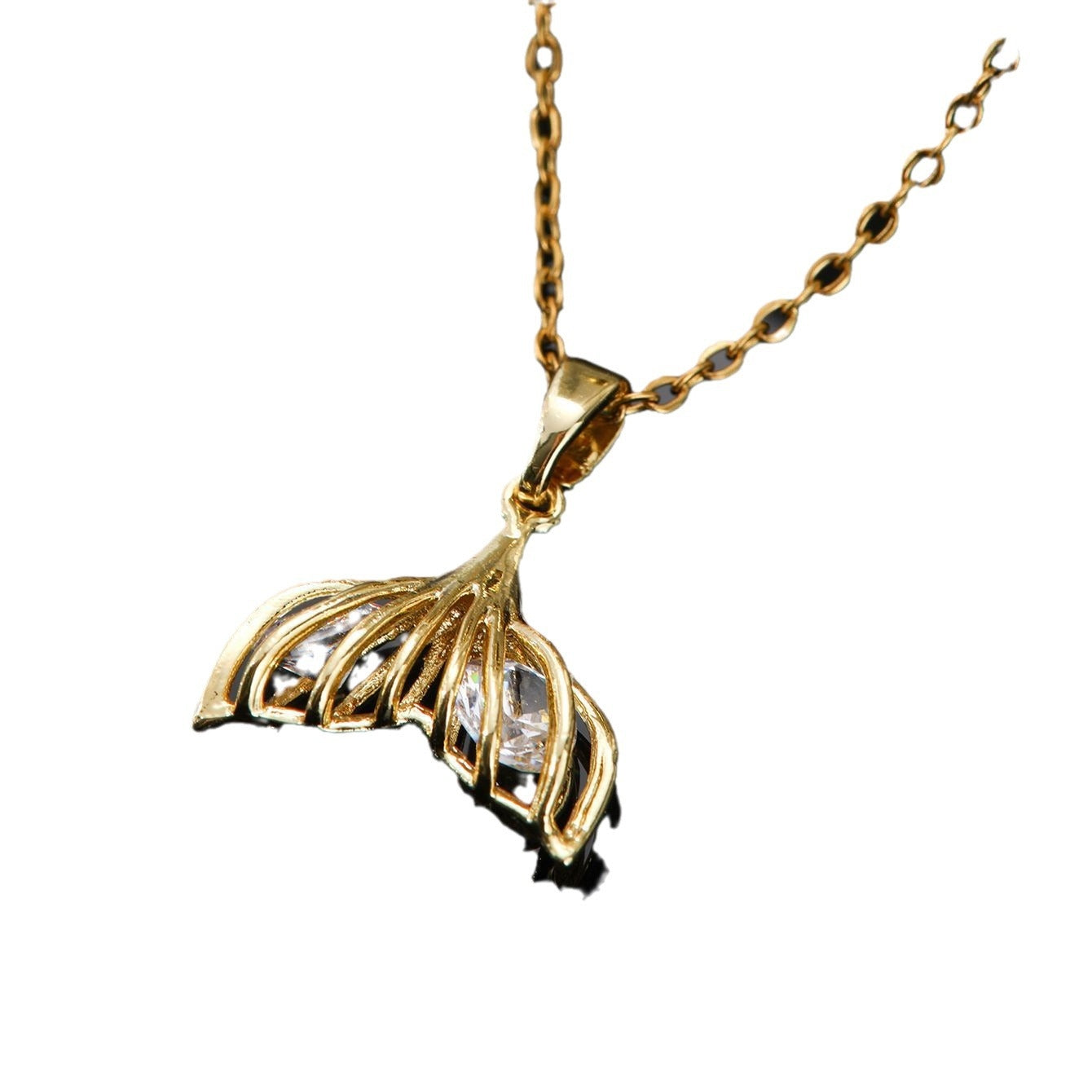 X5694-1 Gold-Mermaid Tail Cut-out Zircon Necklace