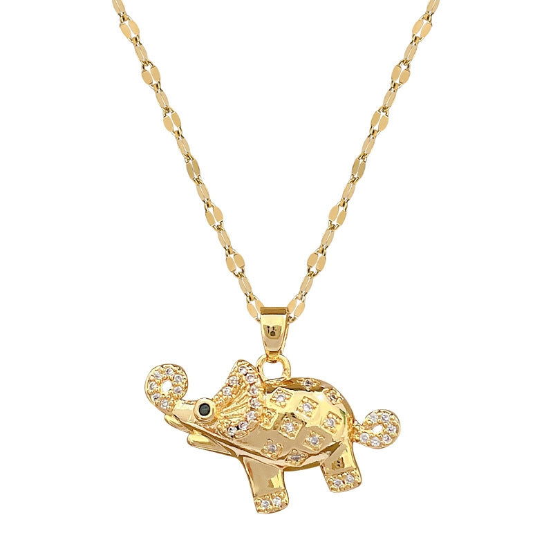 Titanium Steel Gold Plated Elephant Zircon Pendant Necklace