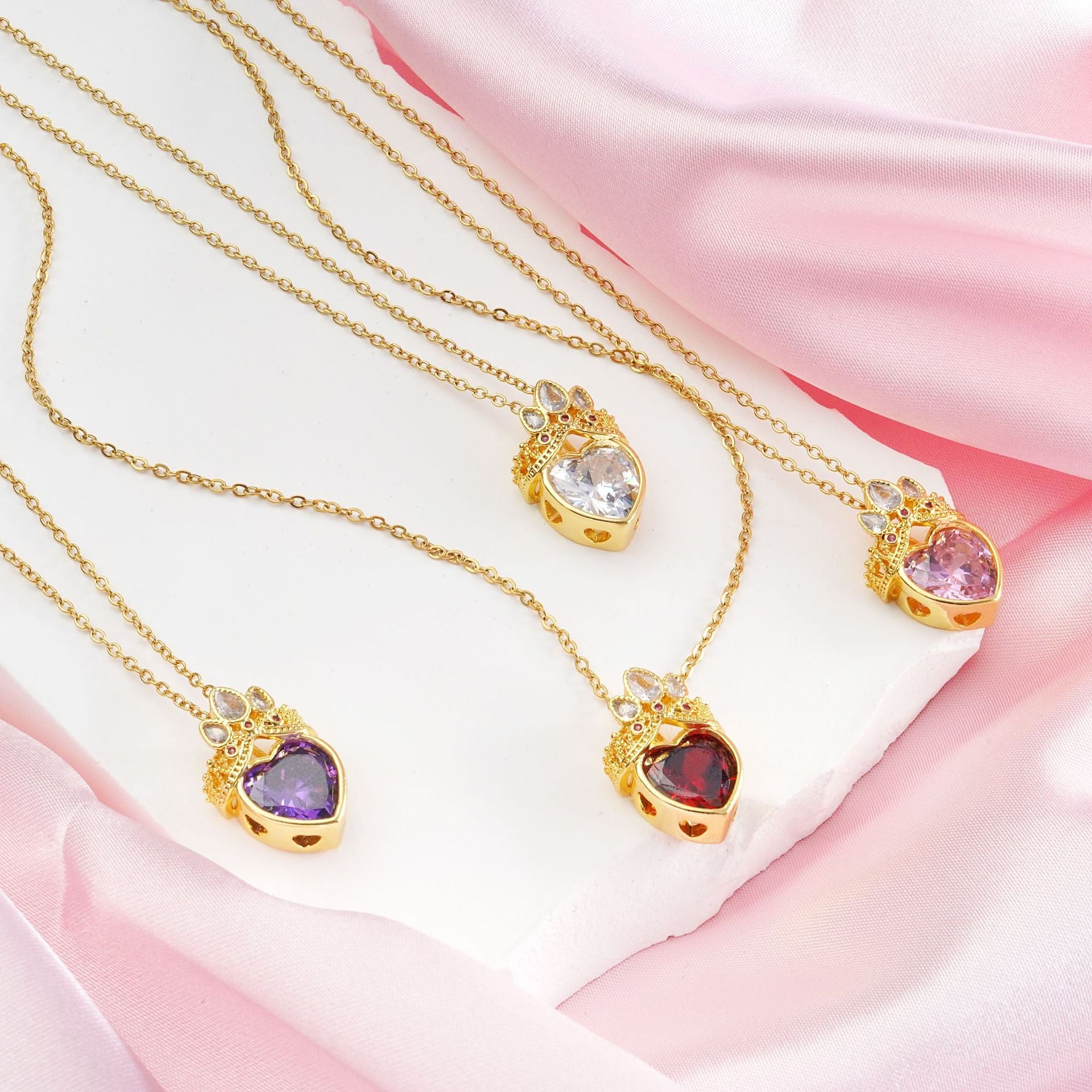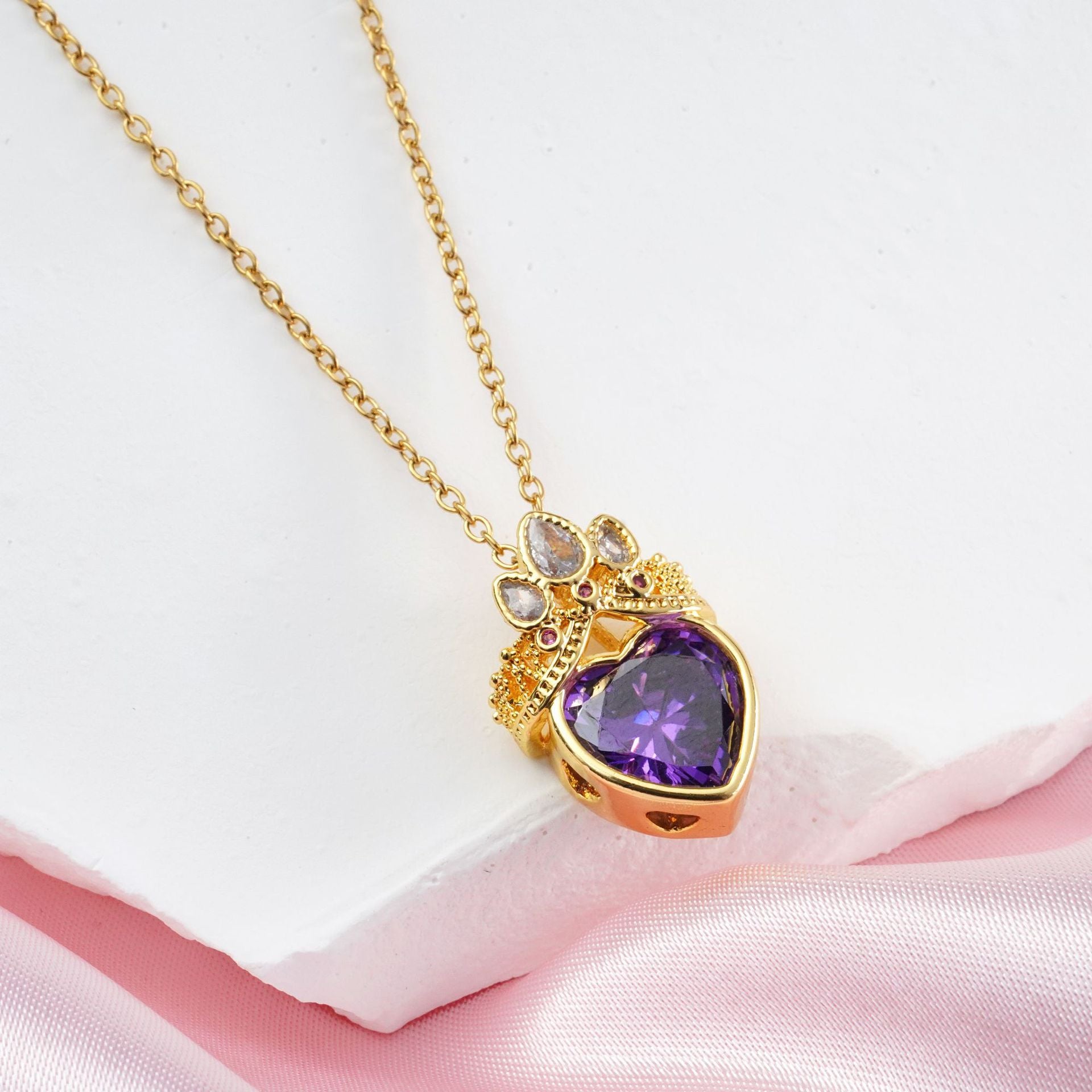 Titanium Steel Heart Crown Zircon Pendant Necklace