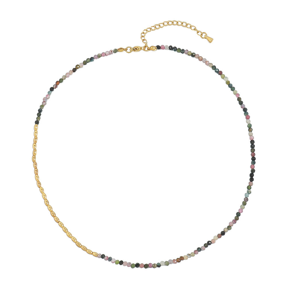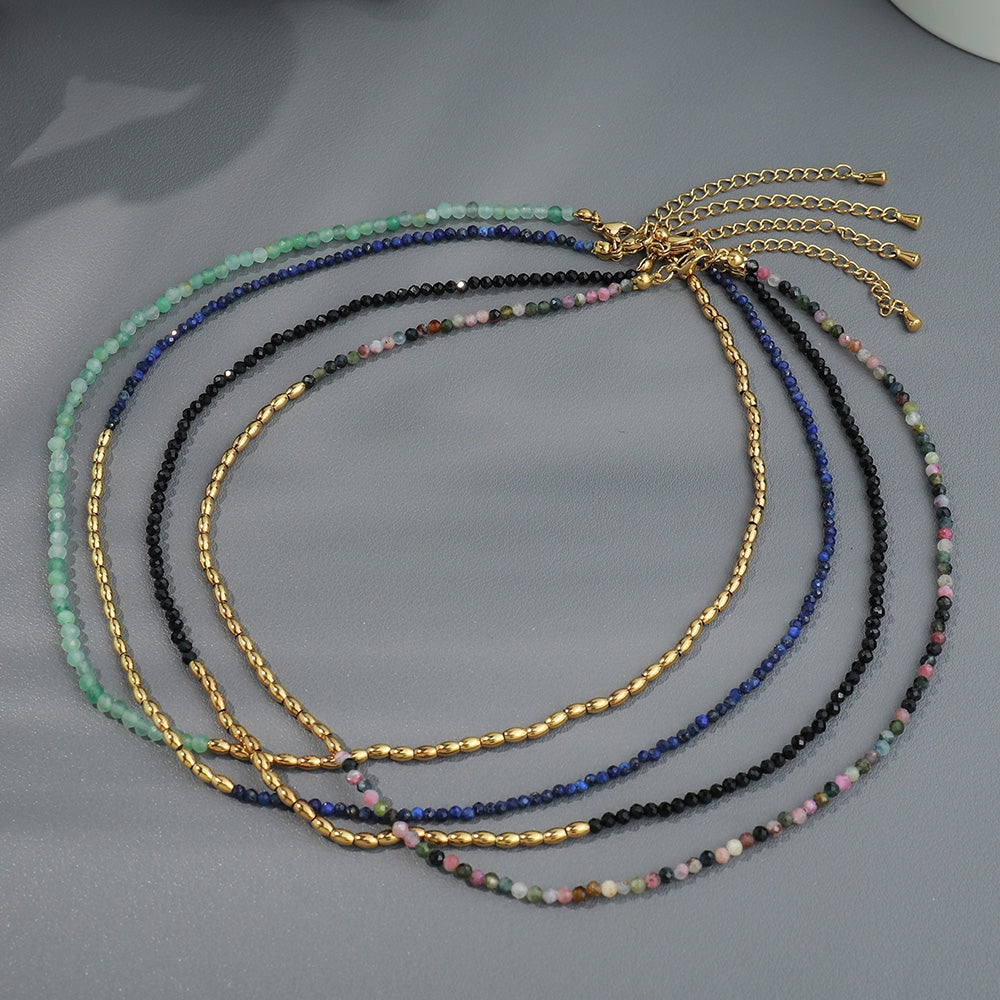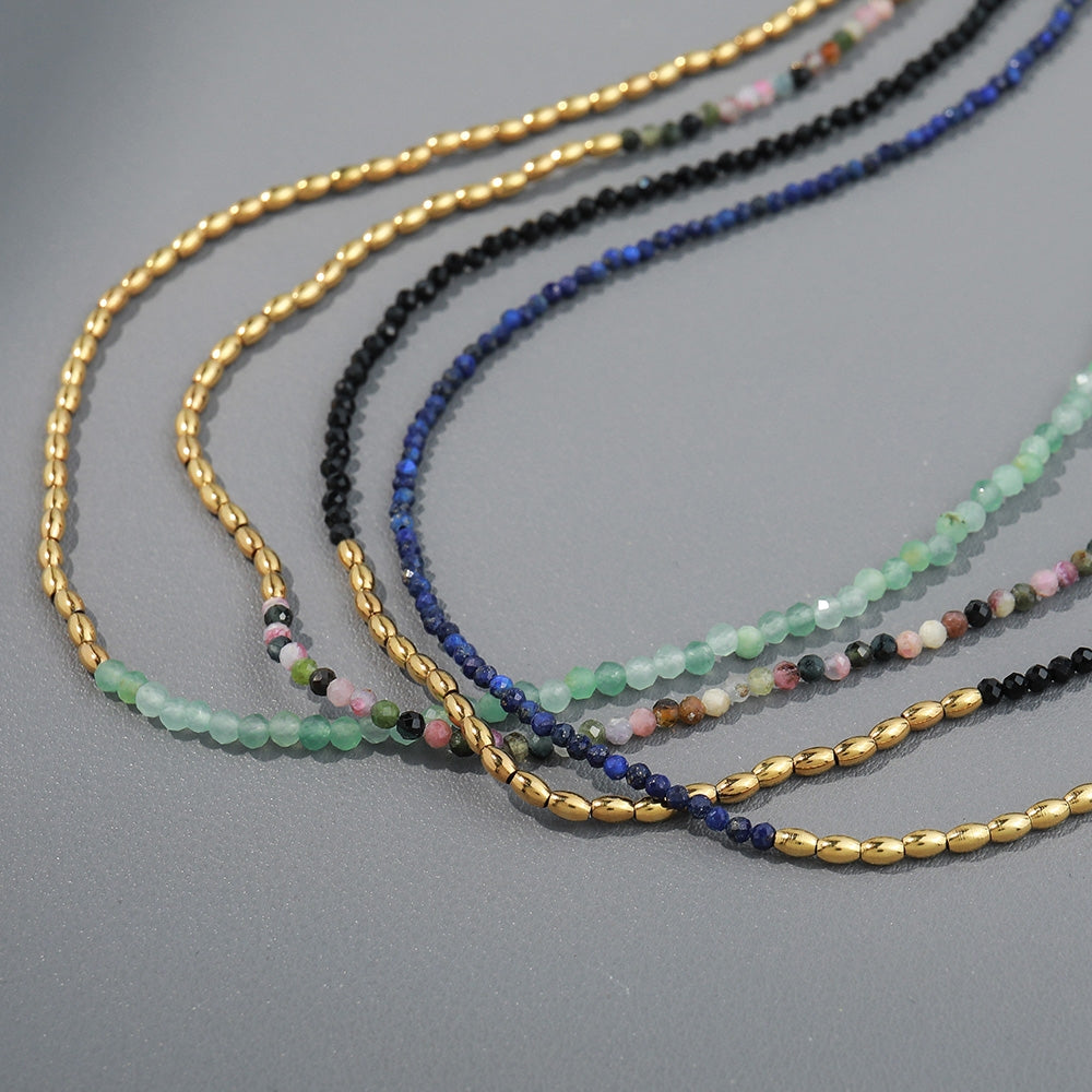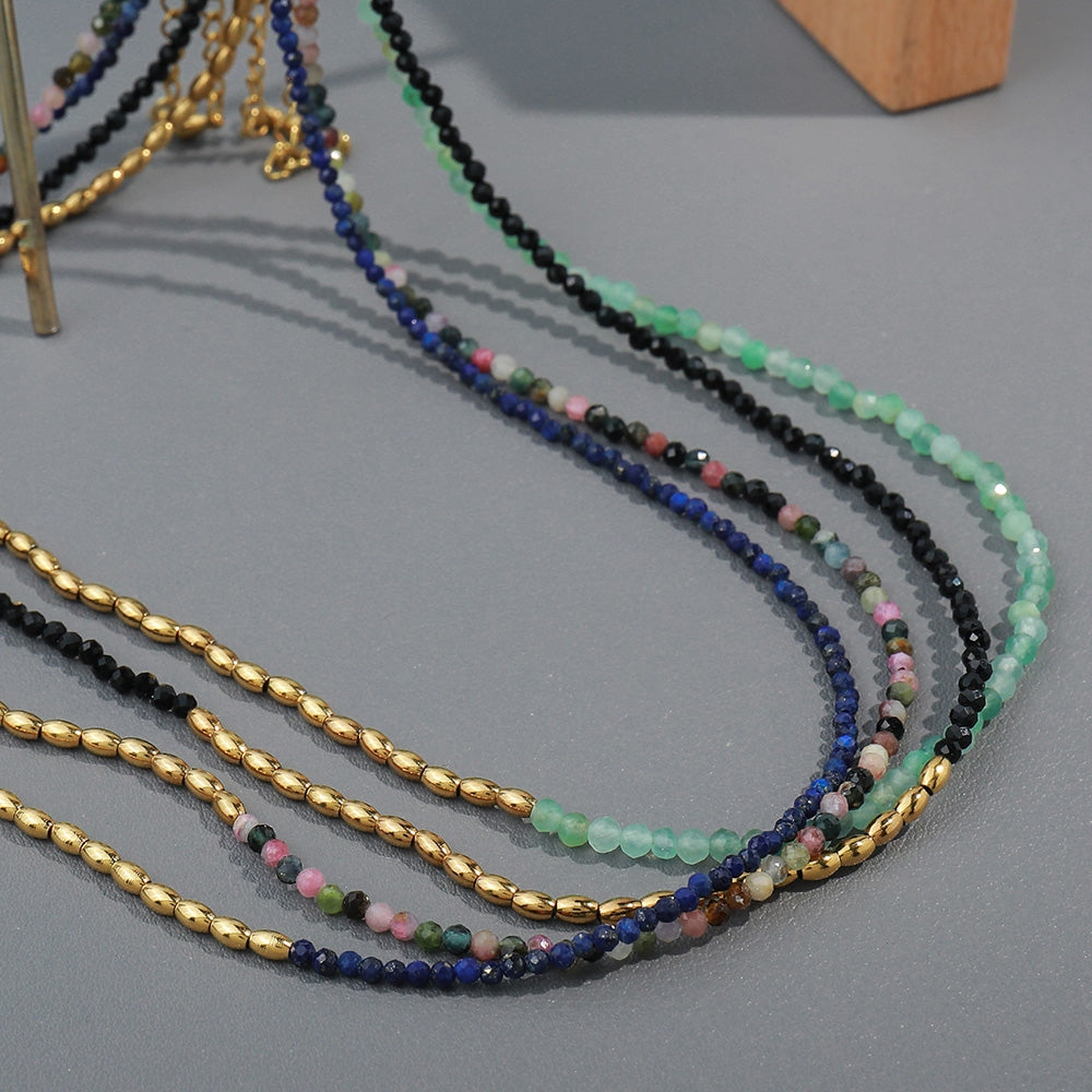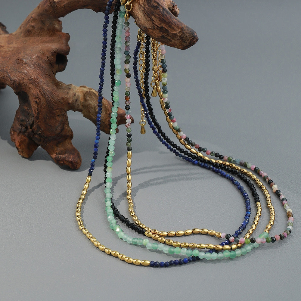 Tourmaline Titanium Steel 18K Gold Plated Bohemian Vacation Necklace with Black Spinel and Lapis Lazuli Stones
