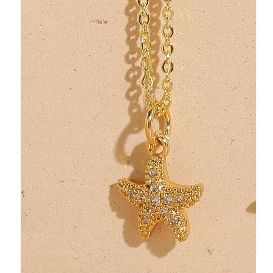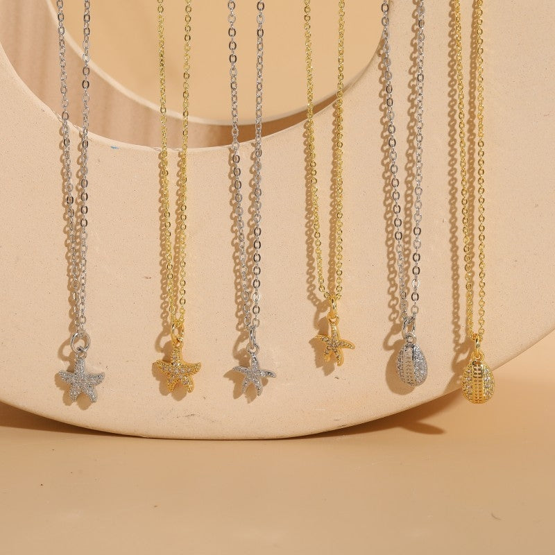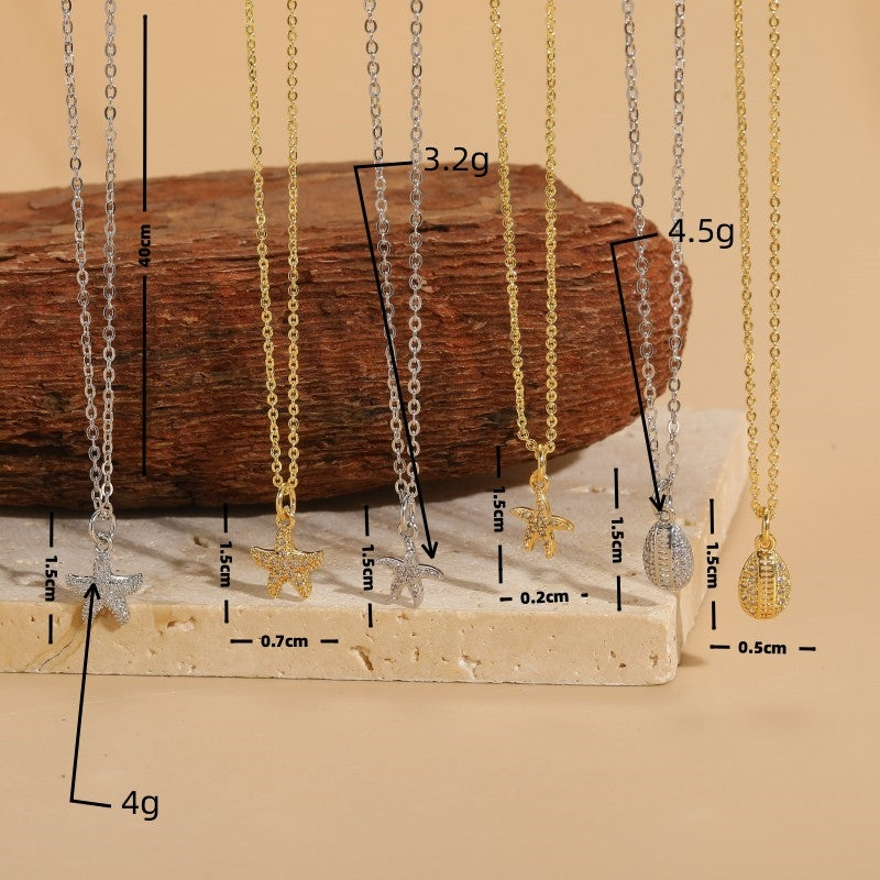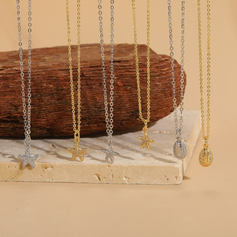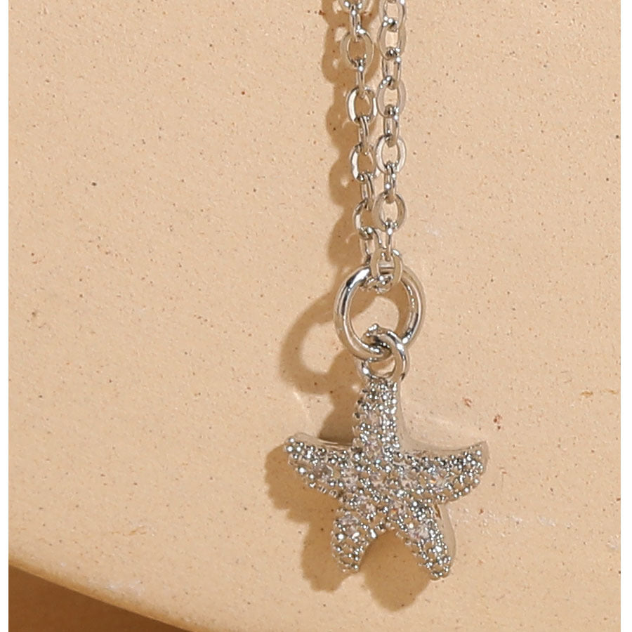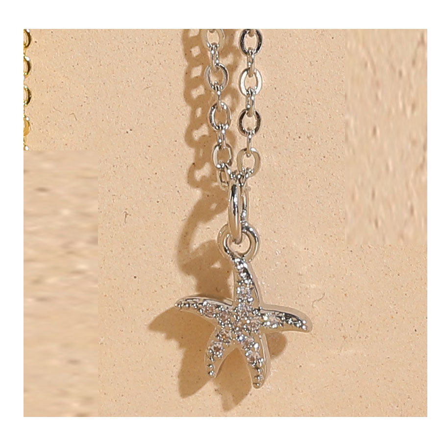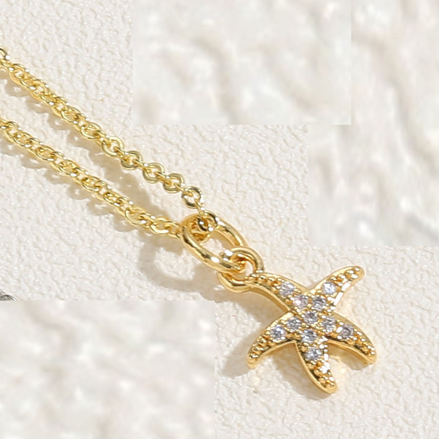 Vacation Beach Starfish Zircon Pendant Necklace - 14k Gold & White Gold Plated Ocean Series Choker