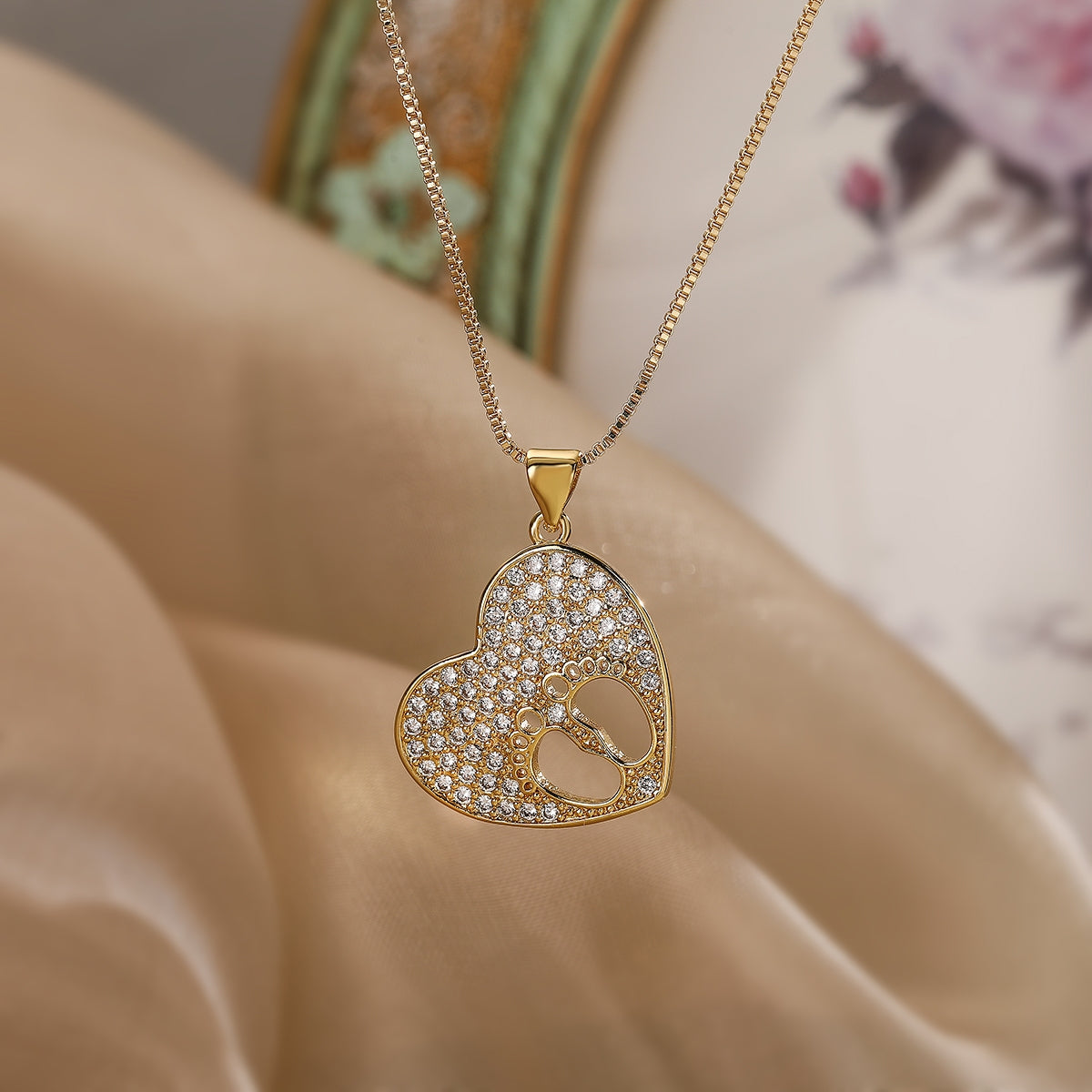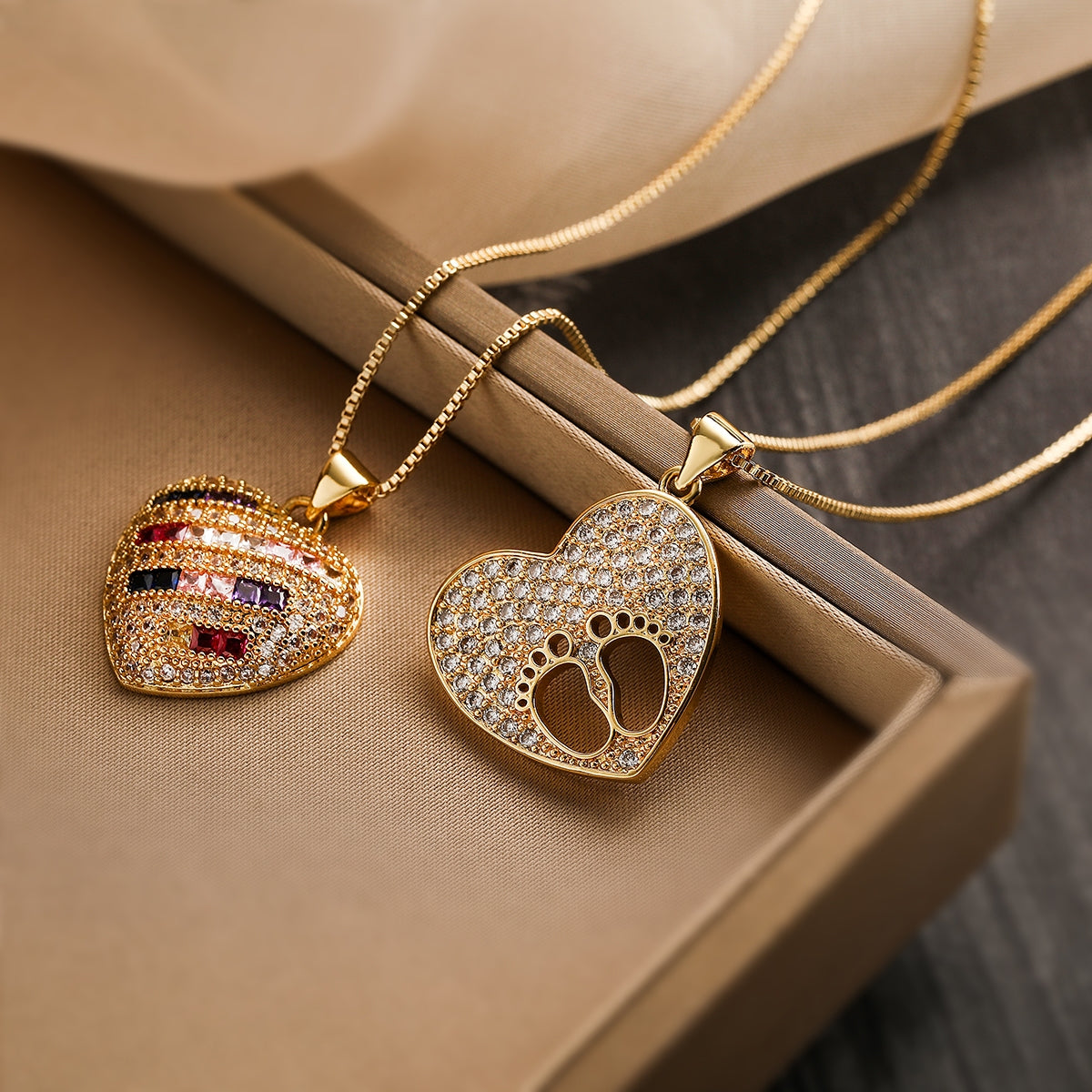 Vacation Beach Heart Shape Zircon 18k Gold Plated Pendant Necklace