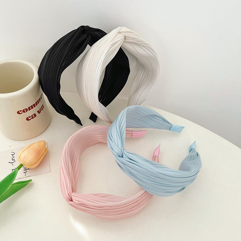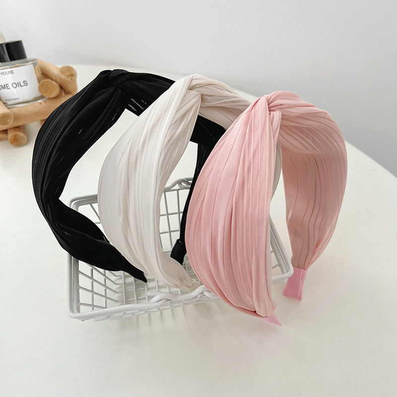Vacation Solid Color Handmade Braided Fabric Wide Headband