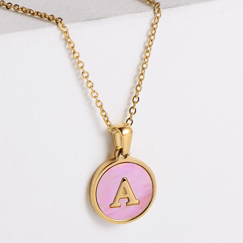 Valentine's Day Round Pendant Shell Initial Necklace