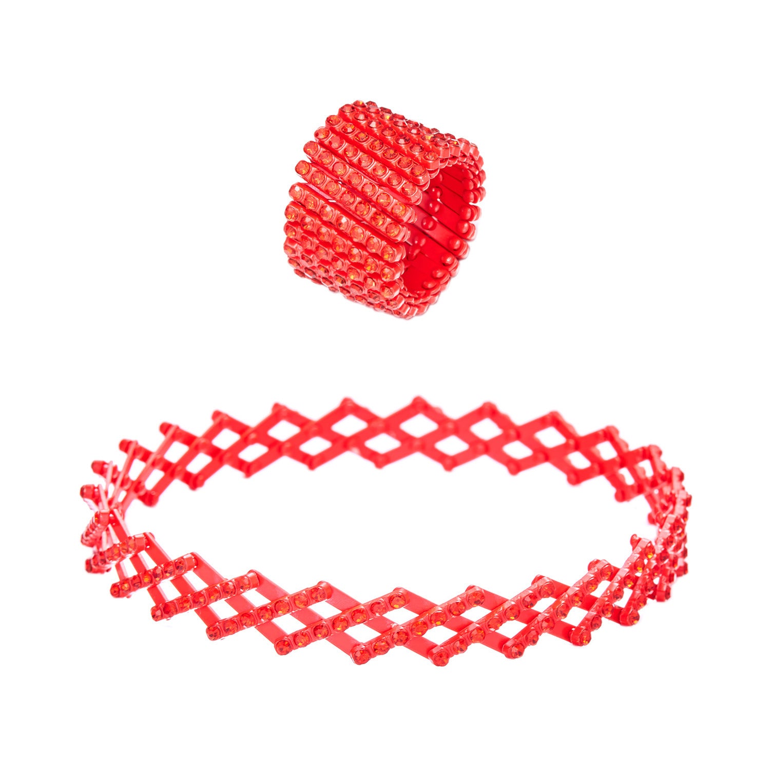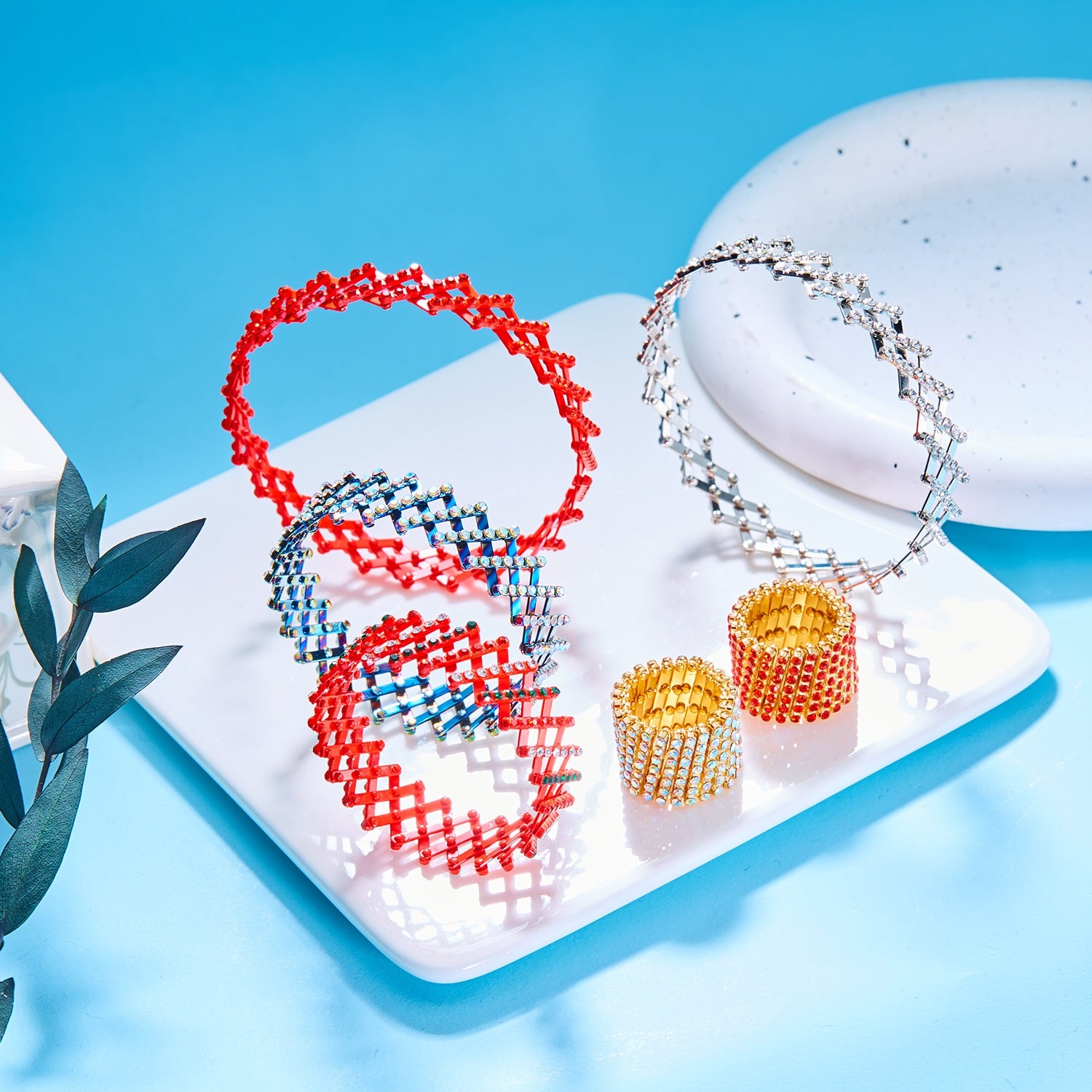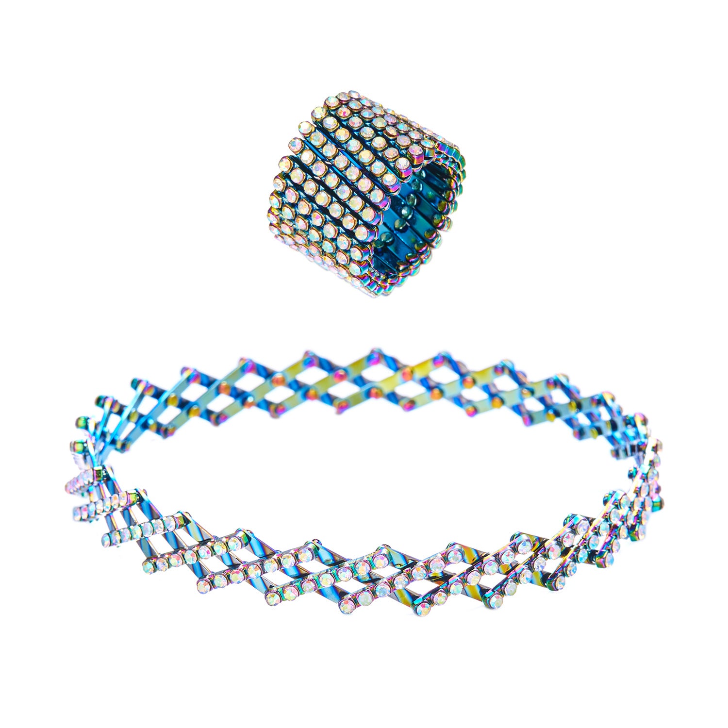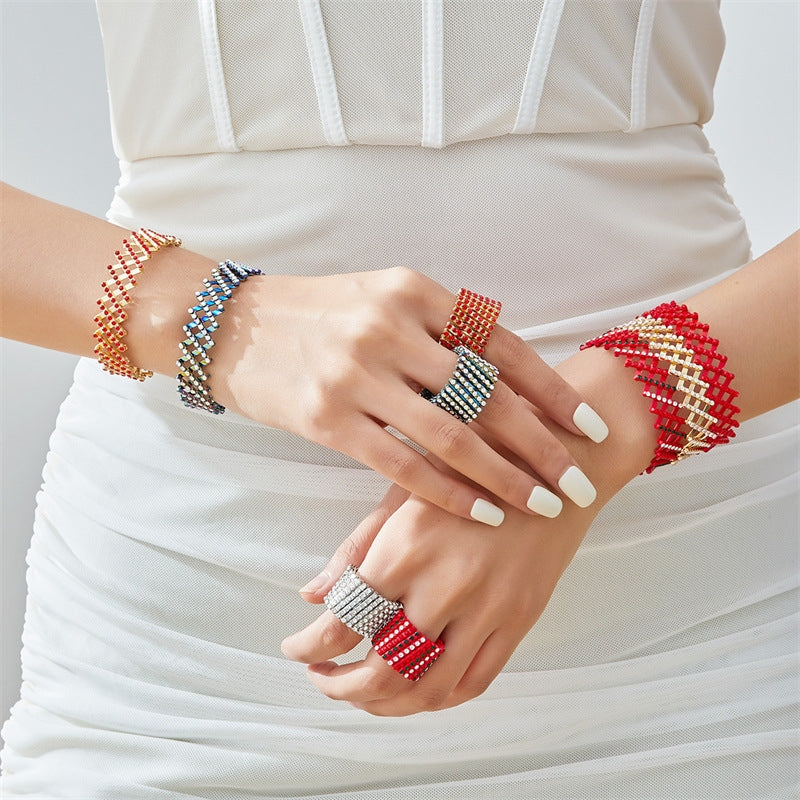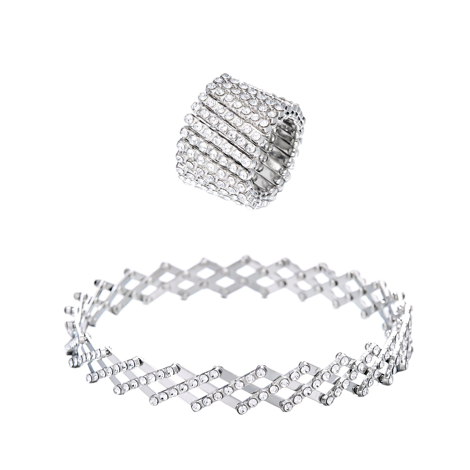 Vintage Geometric Rhombus Alloy Copper Adjustable Rhinestone Bracelet Ring Combo