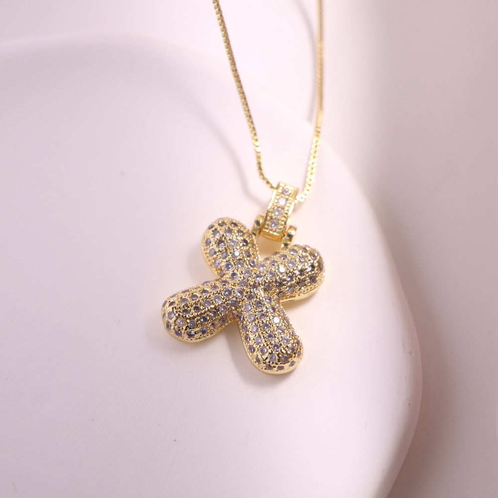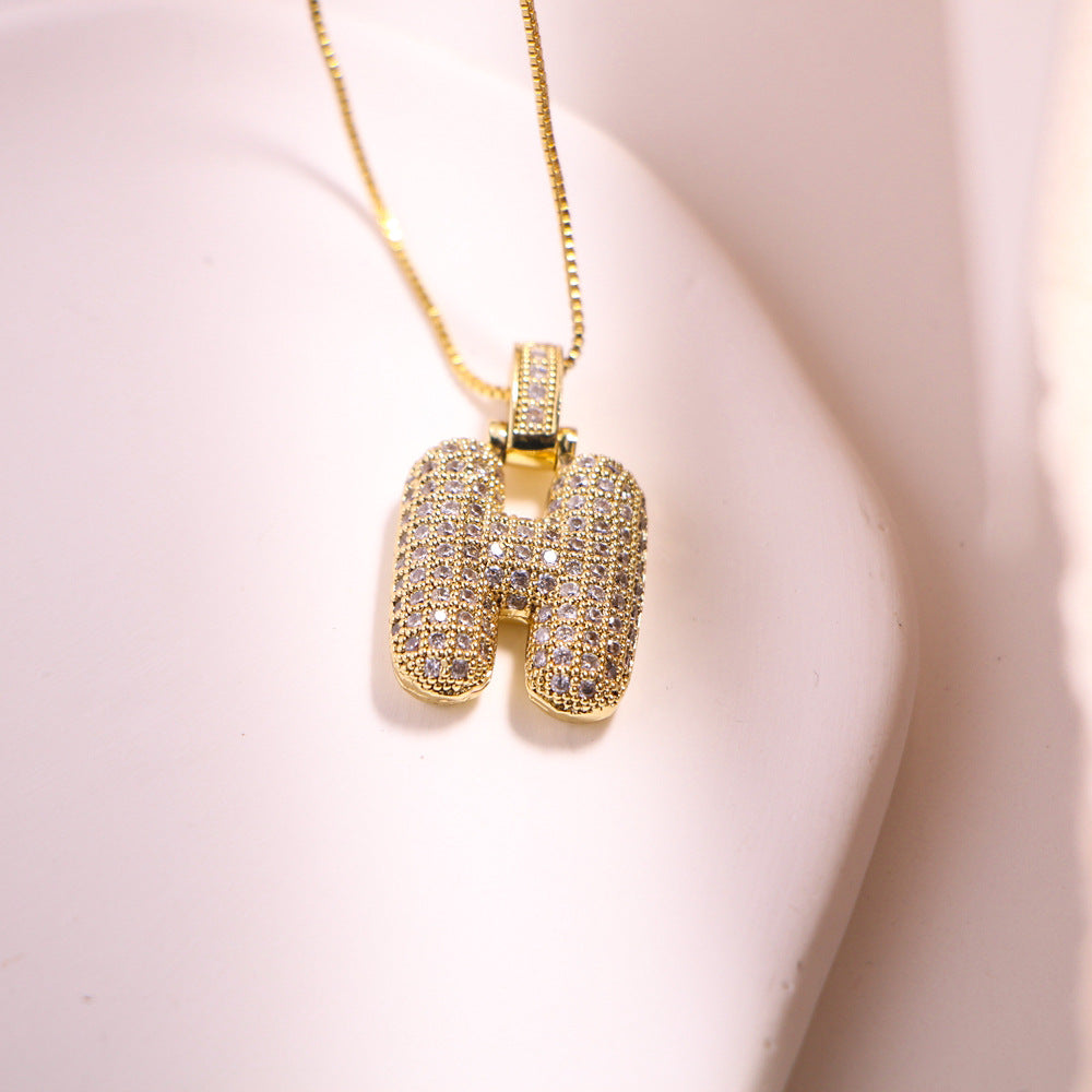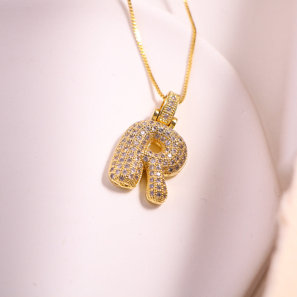 Vintage 18k Gold Plated Zircon Initial Pendant Necklace