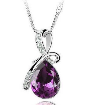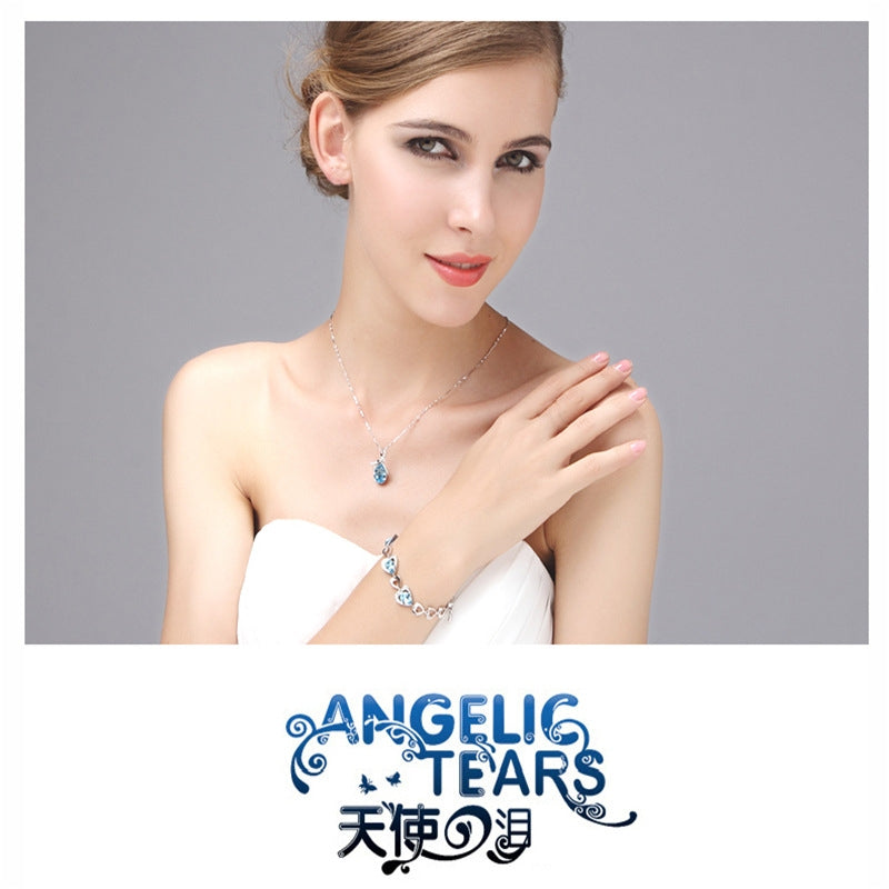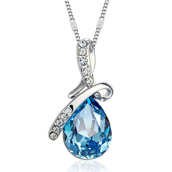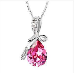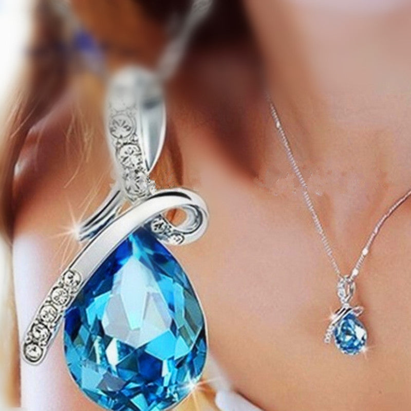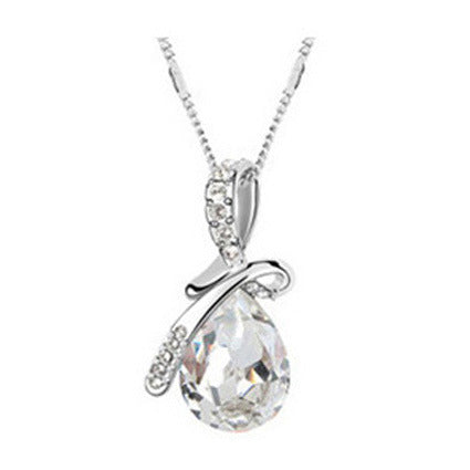 Angel Tear Crystal Pendant Necklace - Women's Alloy Plated Jewelry