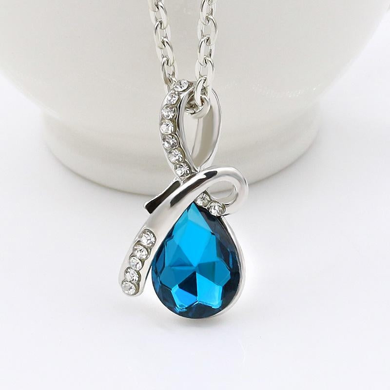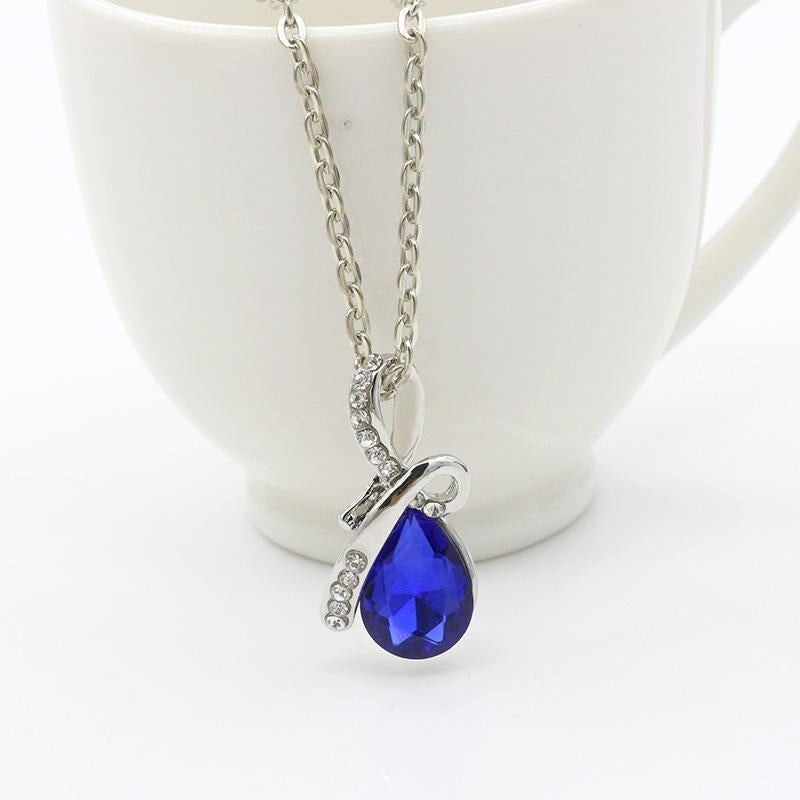 Water Droplet Gemstone Pendant Necklace for Women