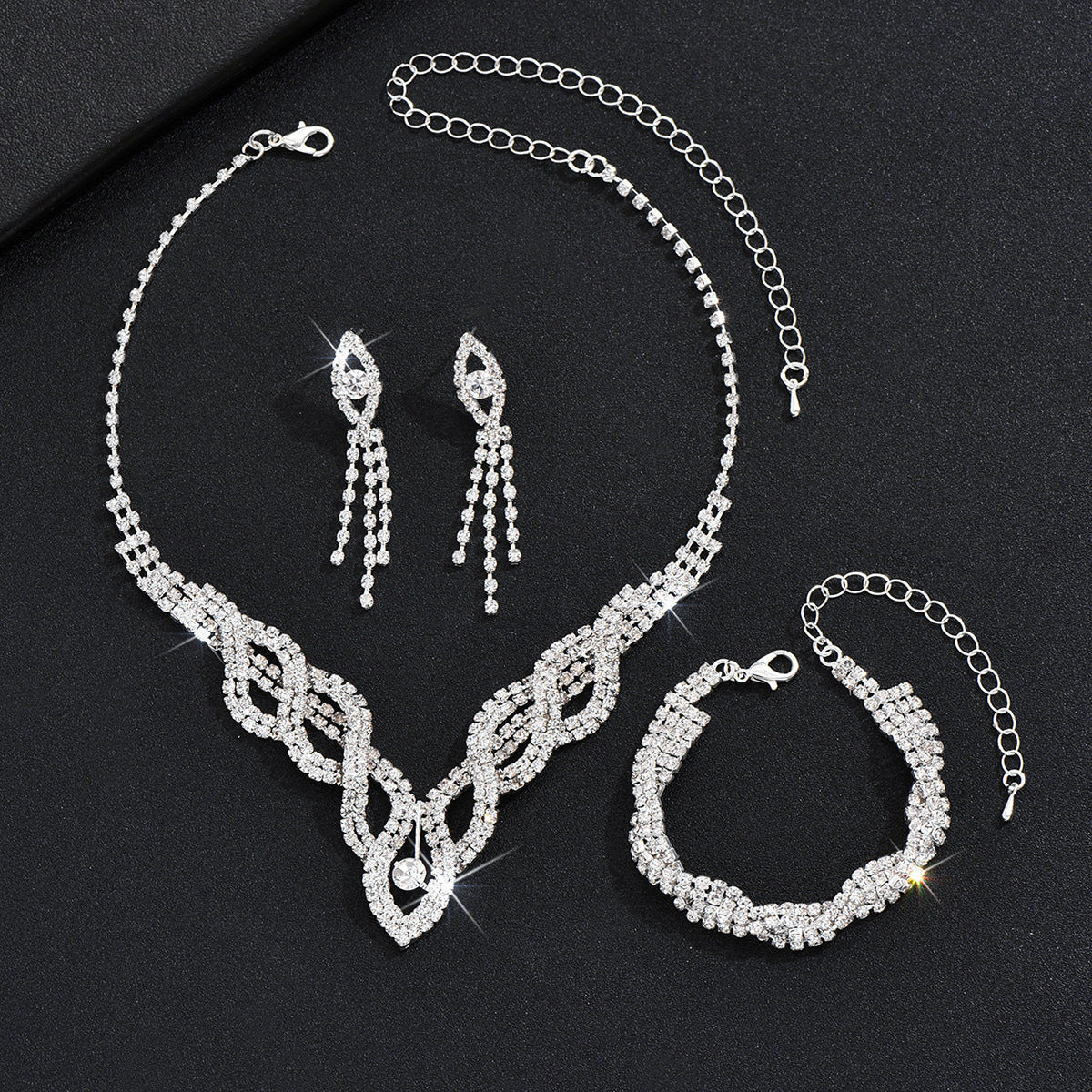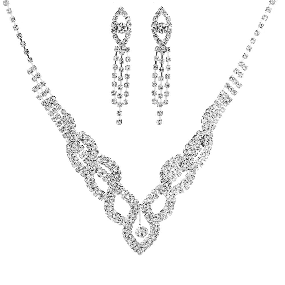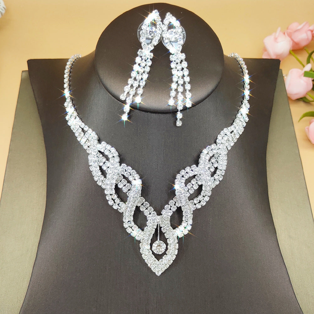Elegant Bridal Hollow Diamond Necklace and Earrings Set