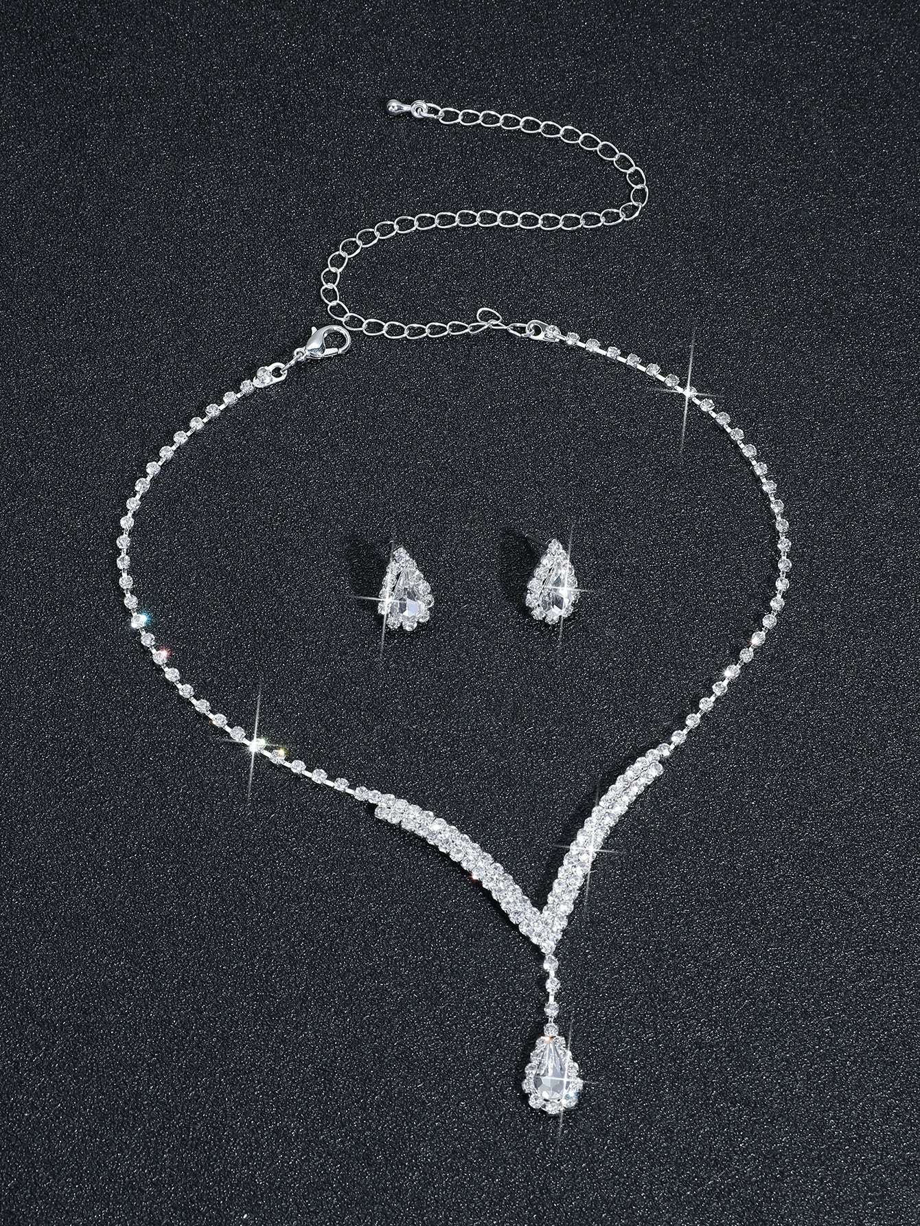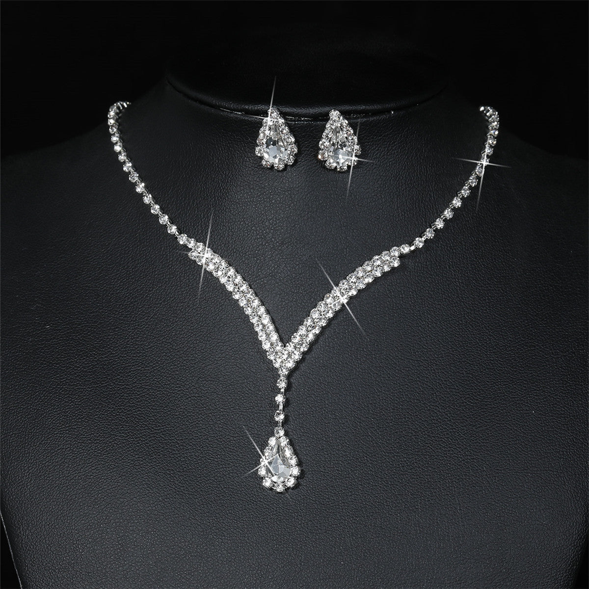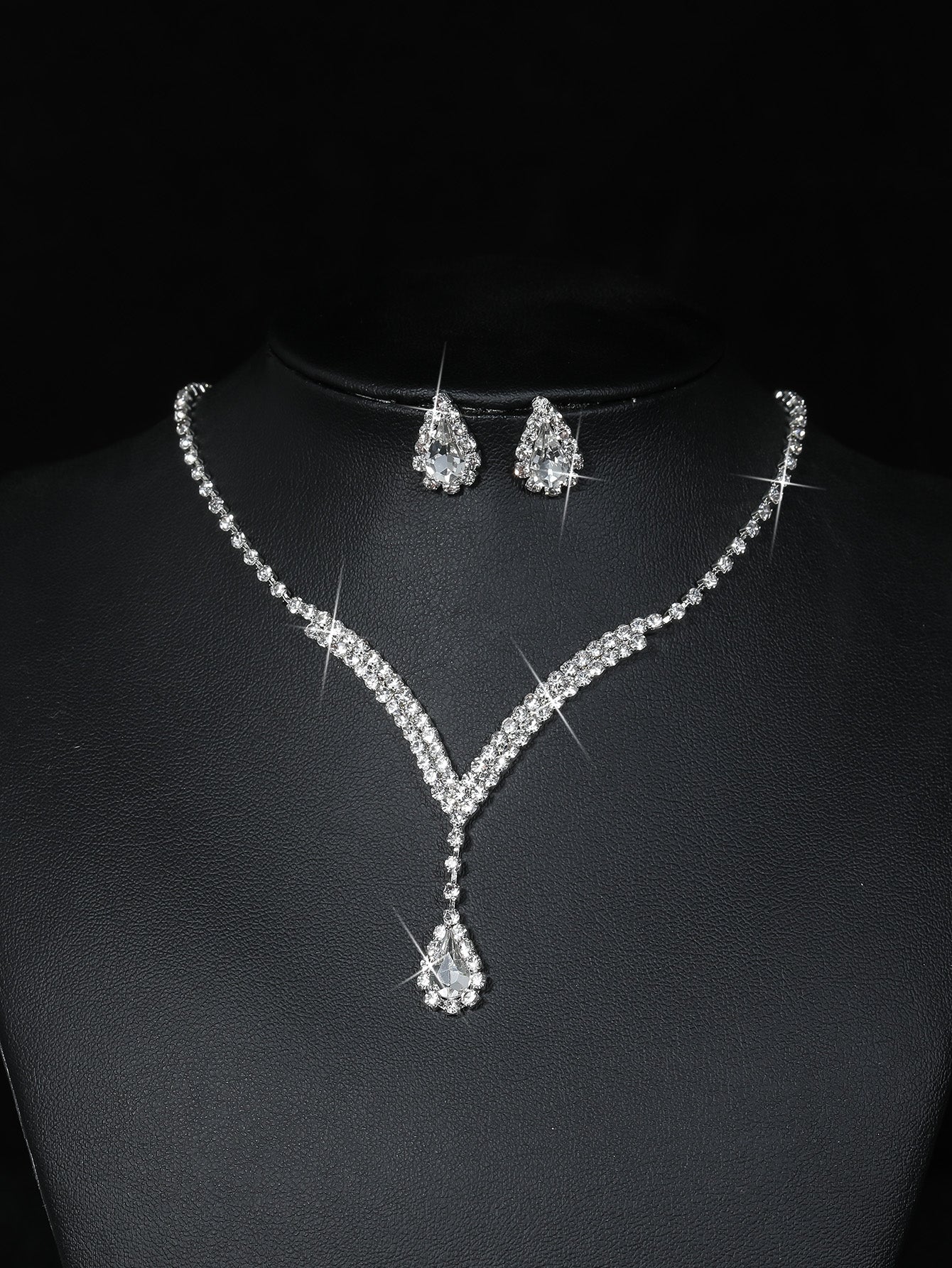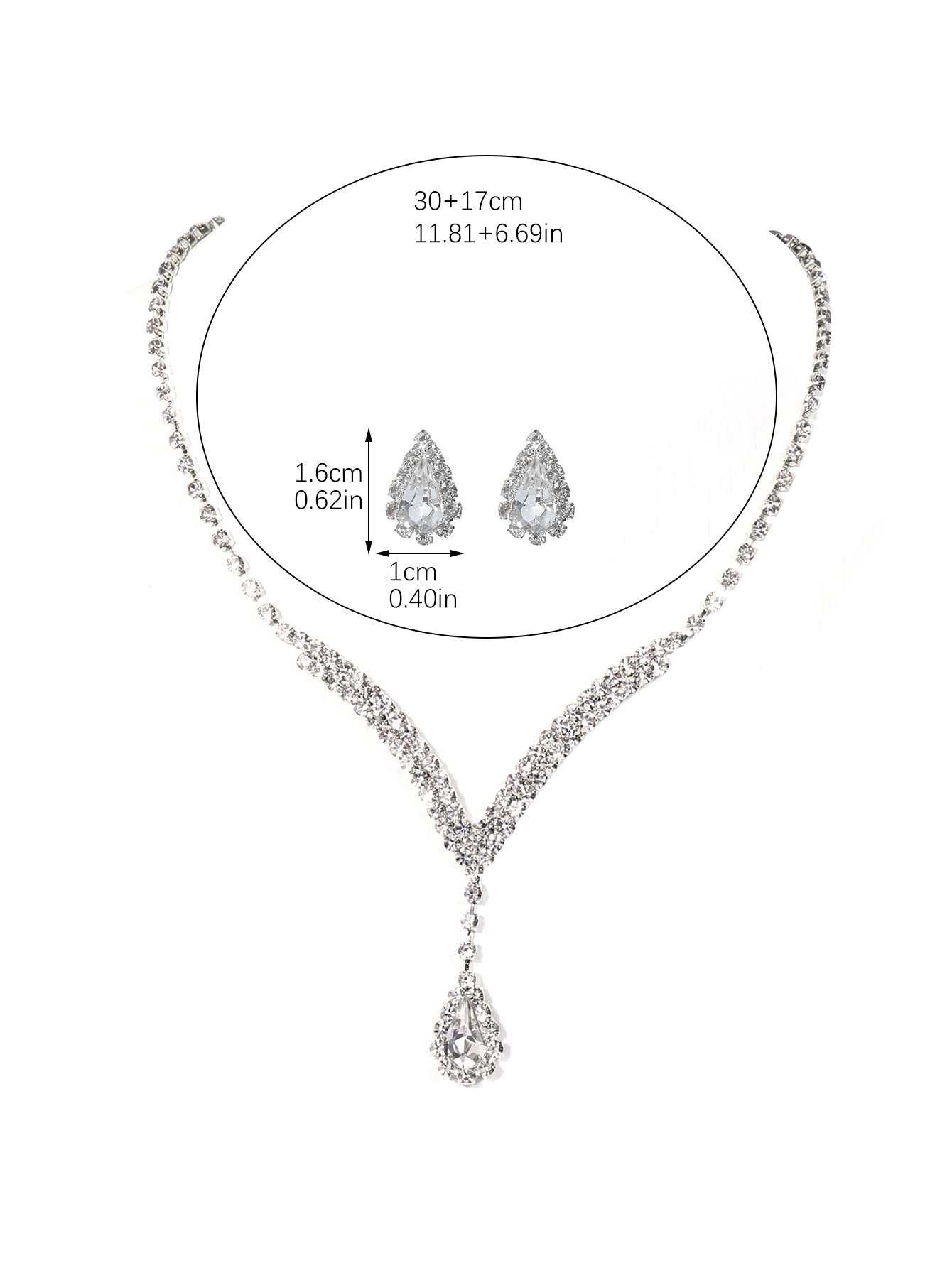 Luxury Rhinestone Necklace and Earrings Set for Women - Silver Plated Bridal Jewelry