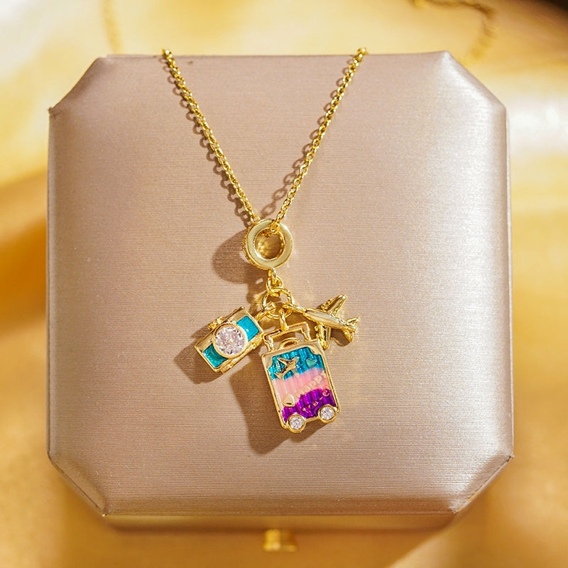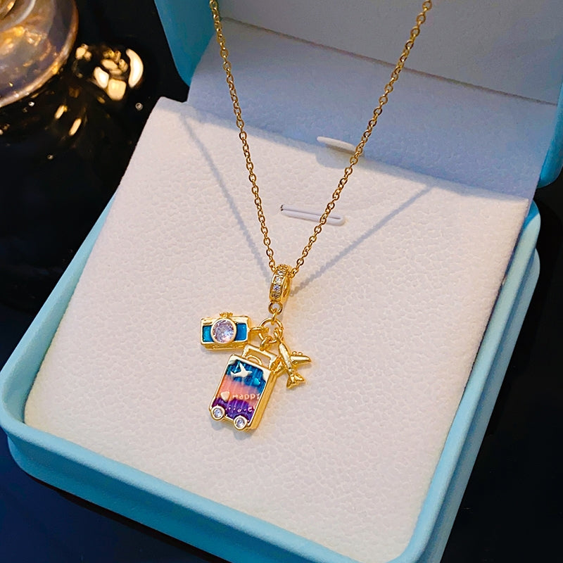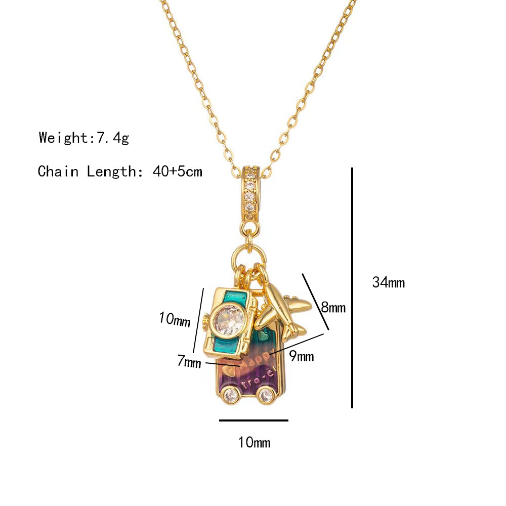 Elegant Travel Airplane Pendant Necklace 18K Gold Plated Zircon