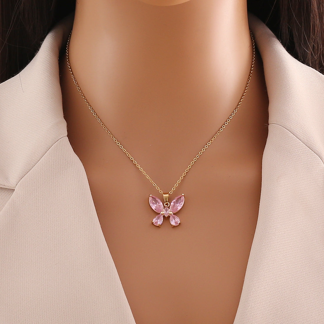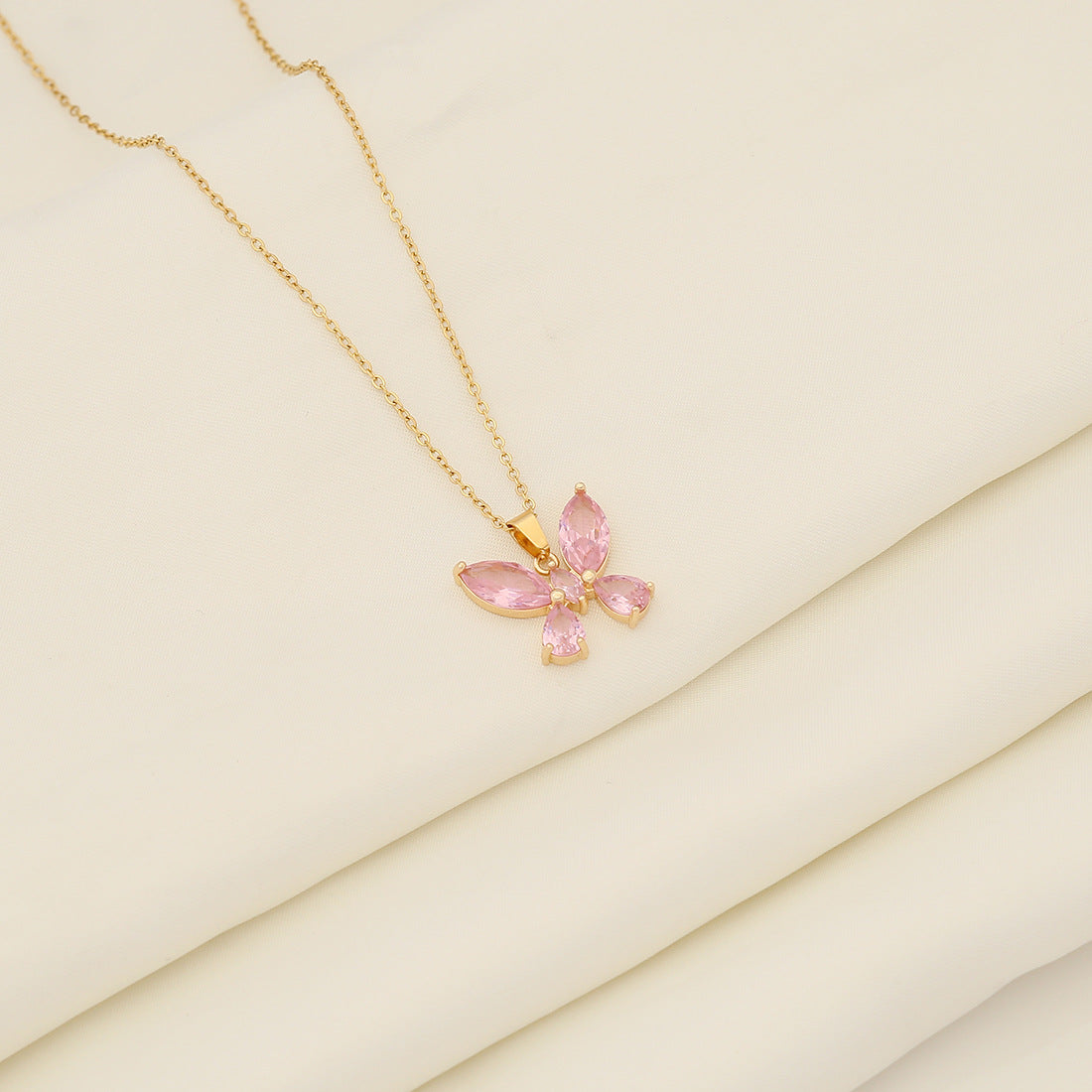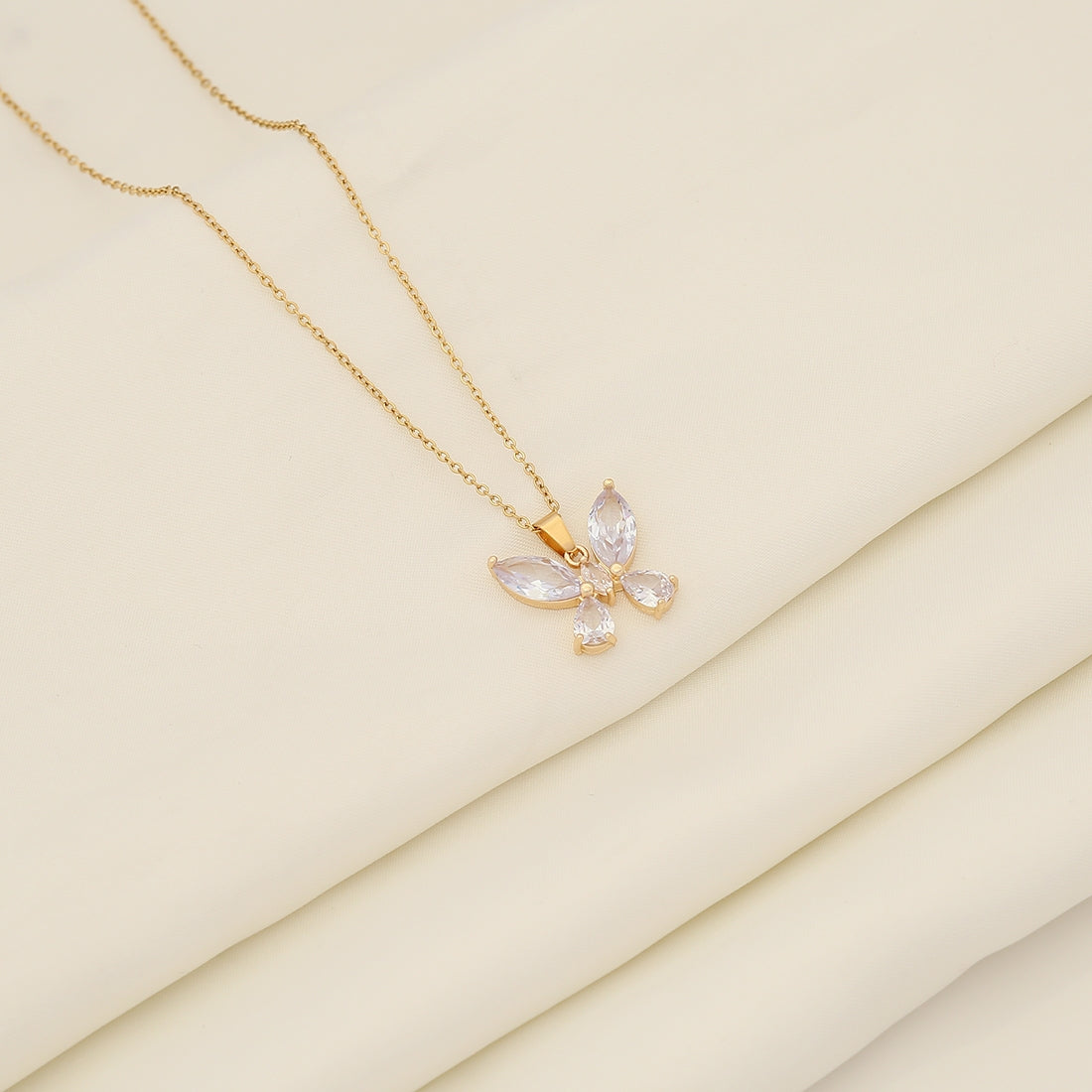 IG Style Shiny Butterfly 18K Gold Plated Stainless Steel Pendant Necklace