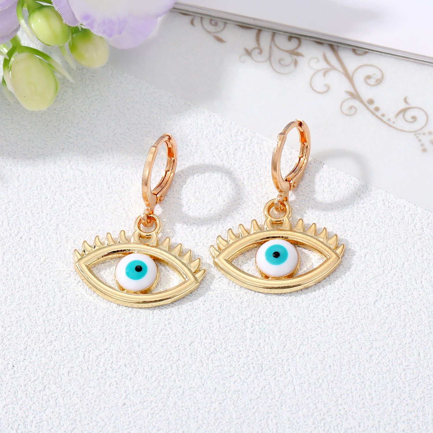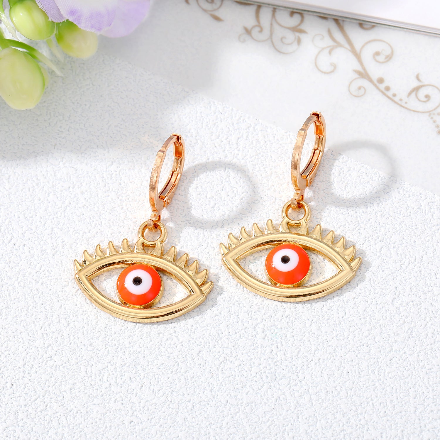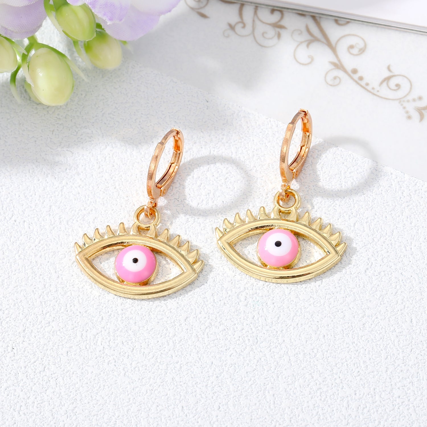 Retro Devil's Eye Alloy Drop Earrings with Hollow Eyelash Design