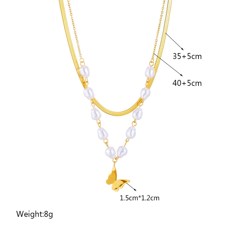 Baroque Butterfly Pearl 18k Gold Plated Layered Necklace with Heart and Starburst Pendant