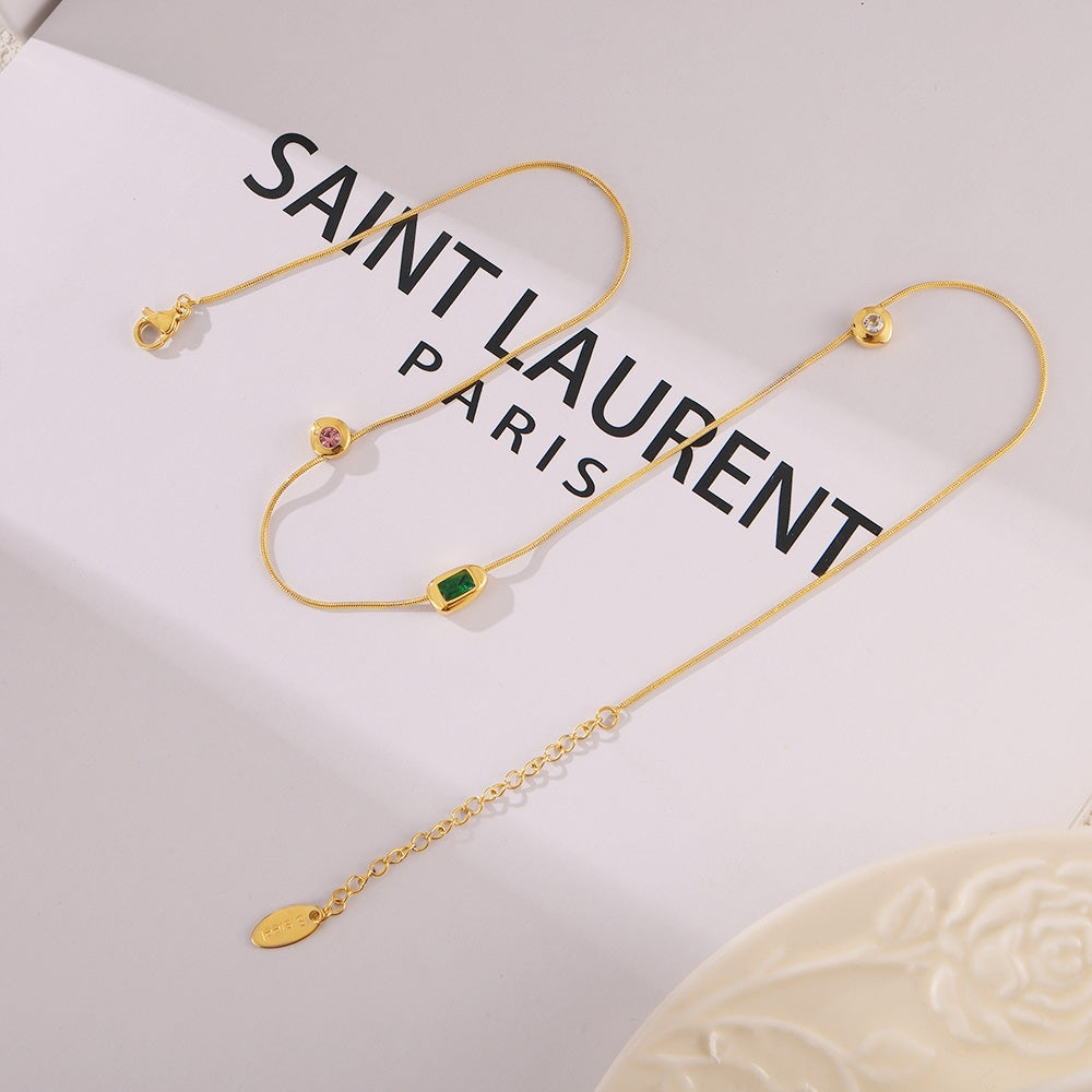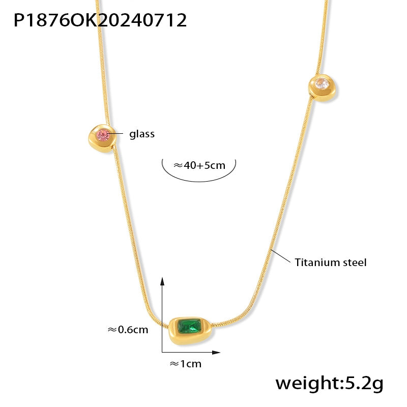Modern Geometric Titanium Steel Necklace with Glass Stone and 18K Gold Plating