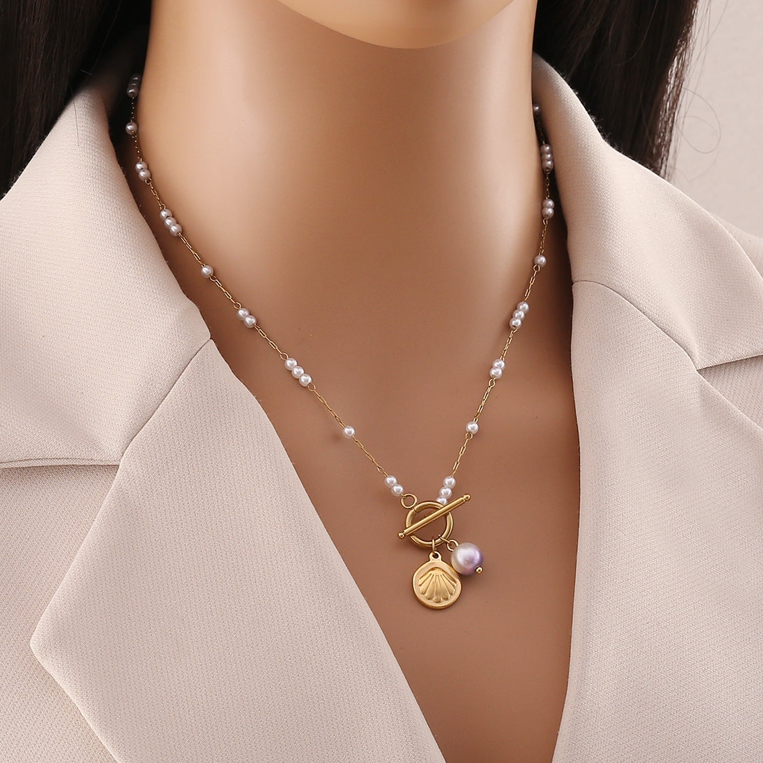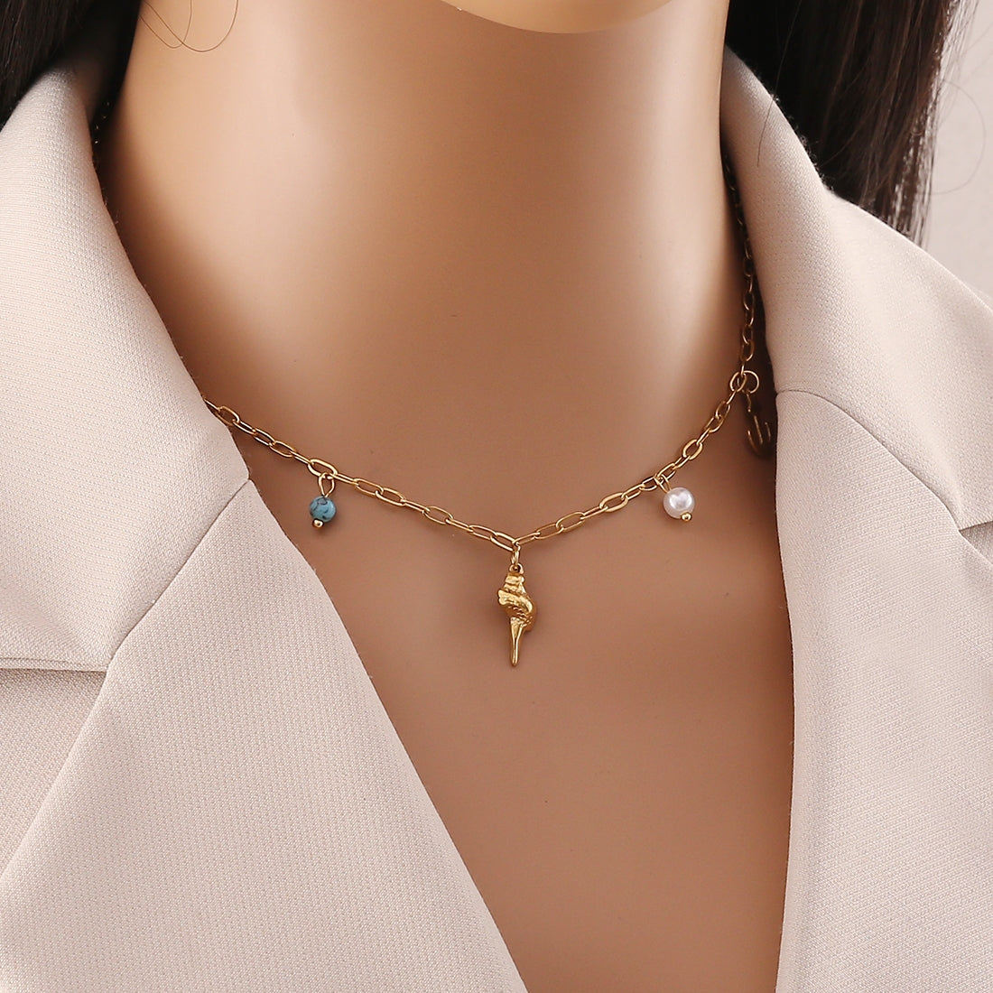 Ocean Series Dolphin & Shell 18K Gold Plated Stainless Steel Necklace