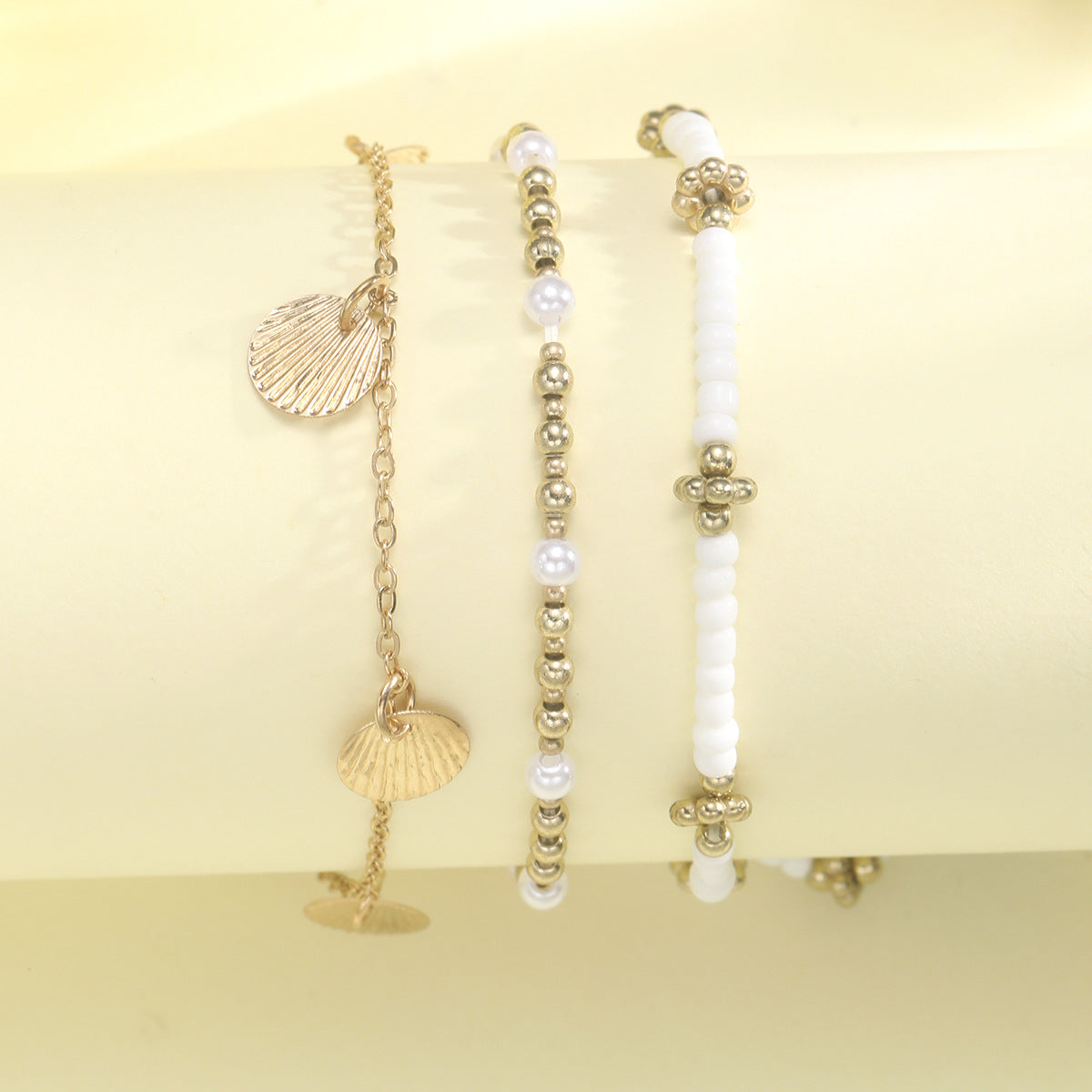 Bohemian Geometric Alloy Anklet with Minimalist Beaded Metal Chain