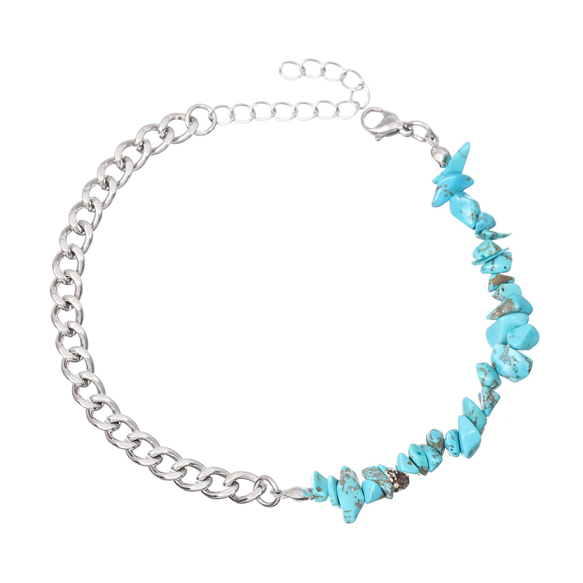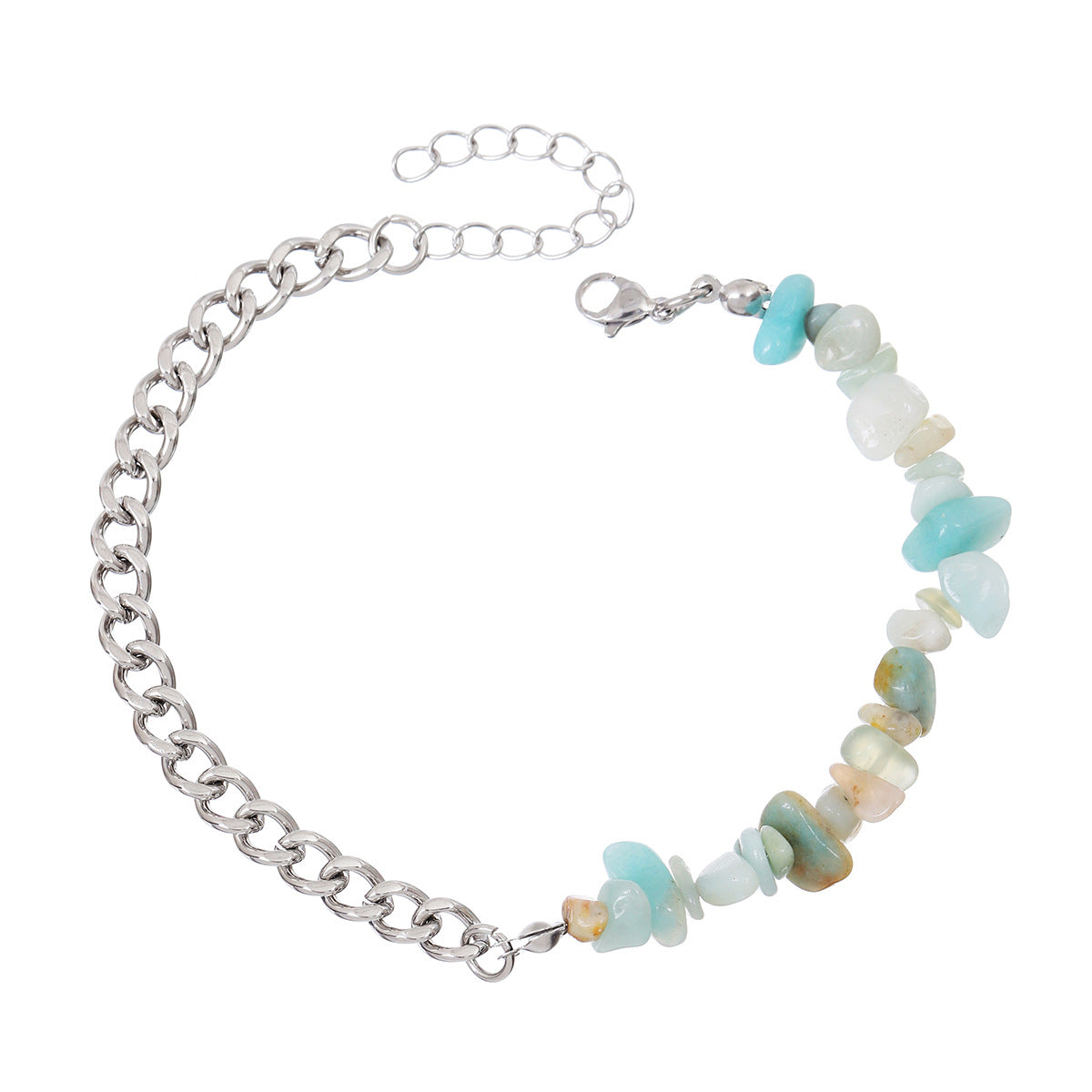 A light blue anklet in crushed stone steel color