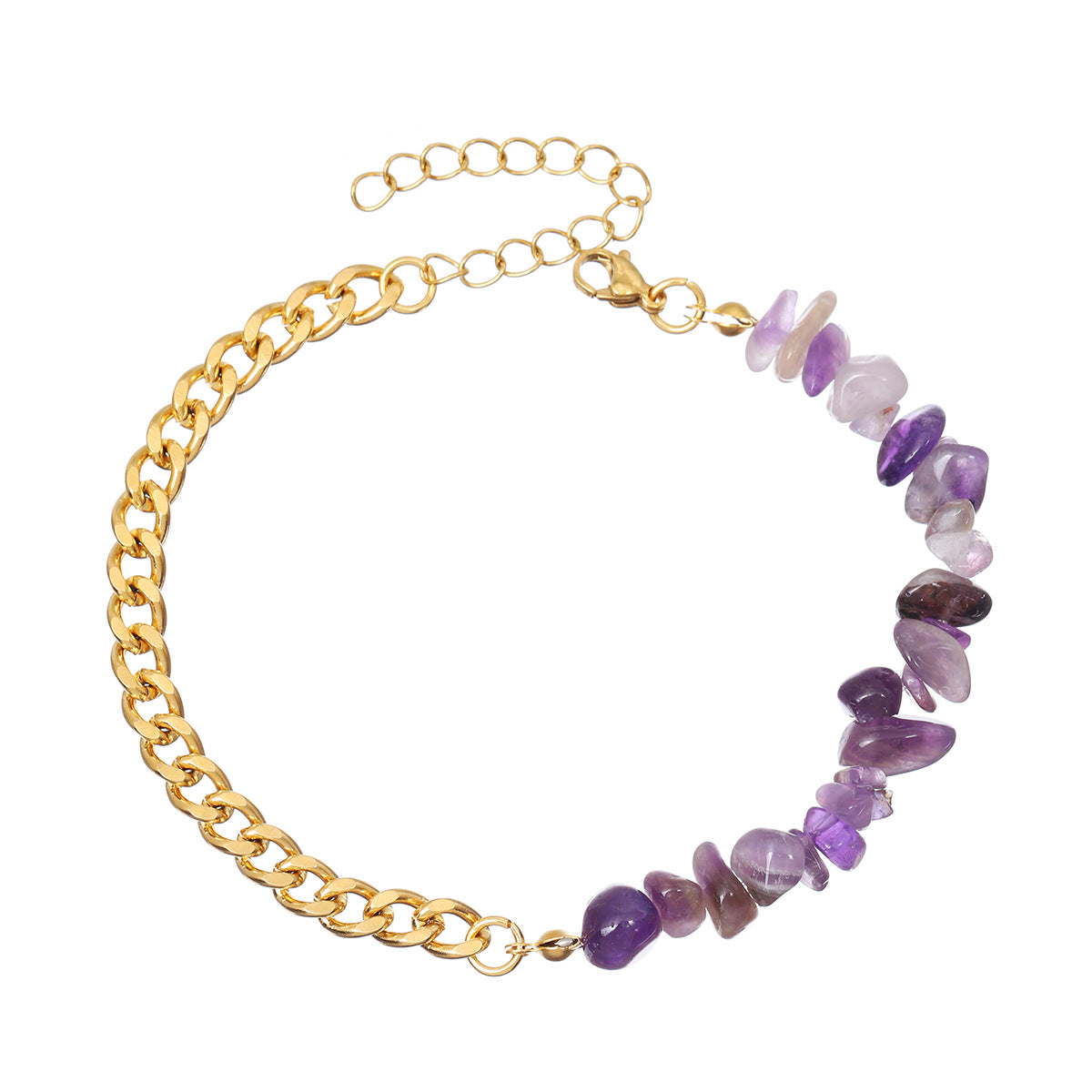 A purple piece of crushed stone gold embossed anklet