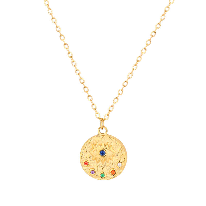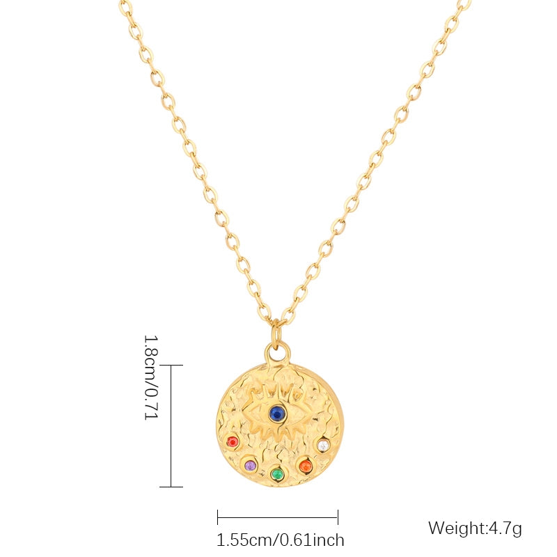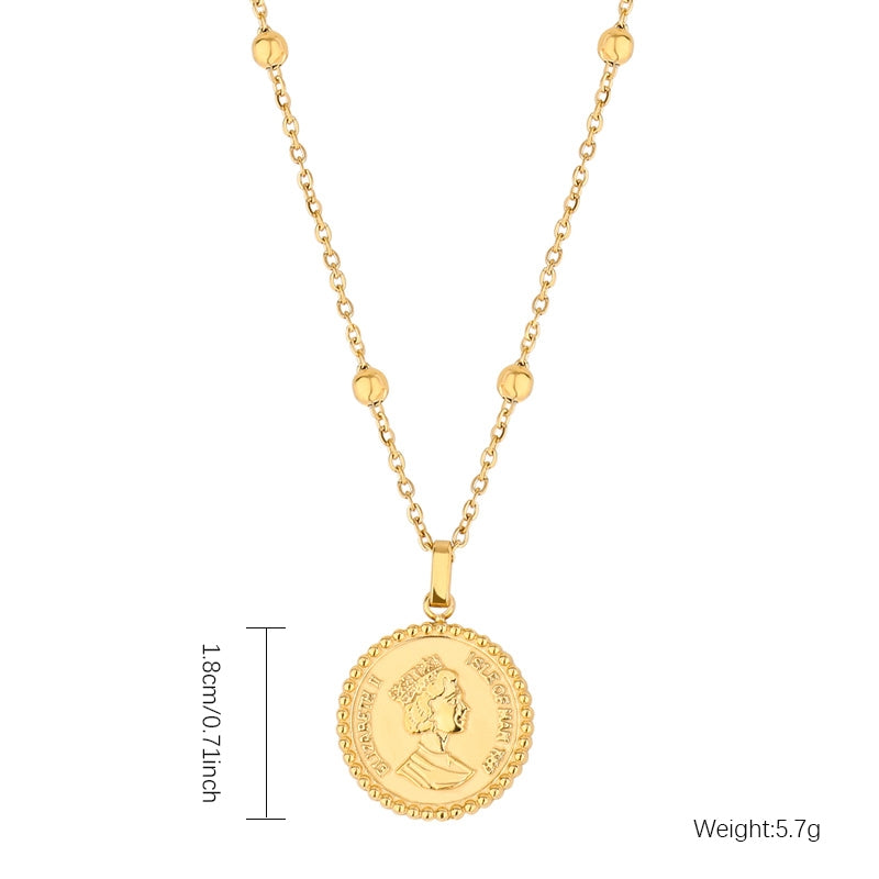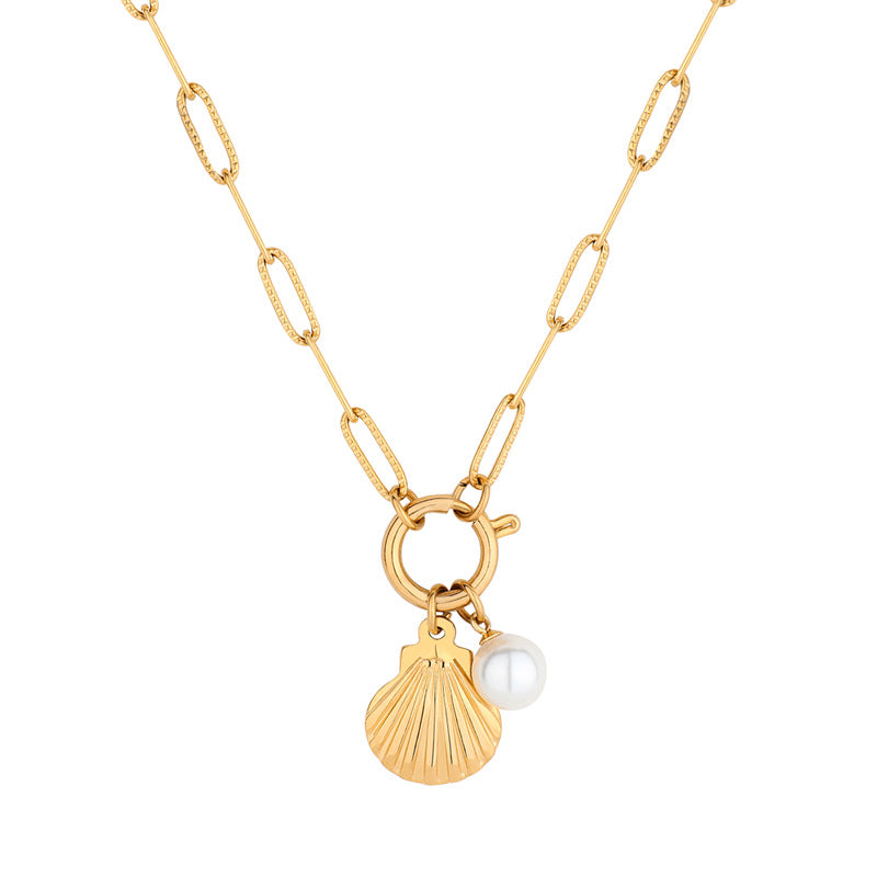 Elegant Zircon Gold Plated Stainless Steel Pendant Necklace with Coin and Shell Design