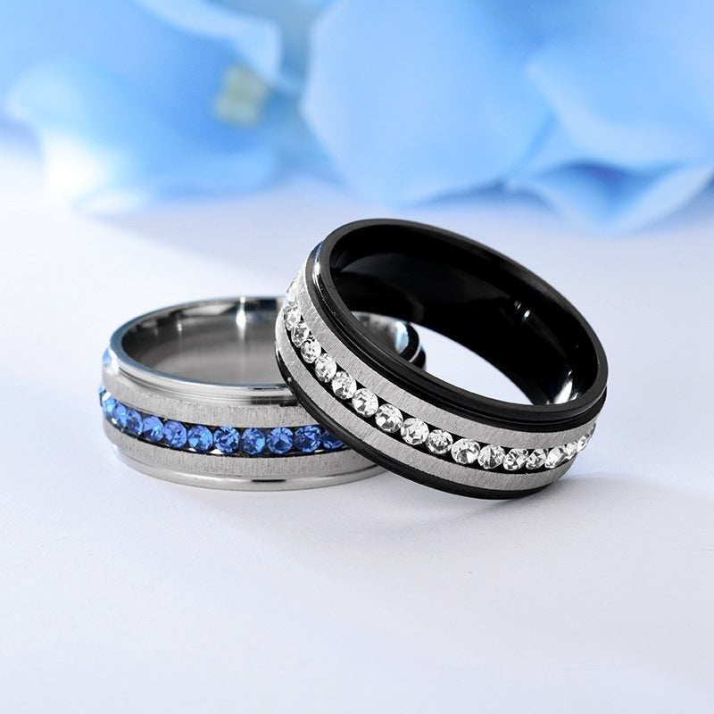 Geometric Stainless Steel Ring with Single Row Zircon for Men - Minimalist Fashion Jewelry