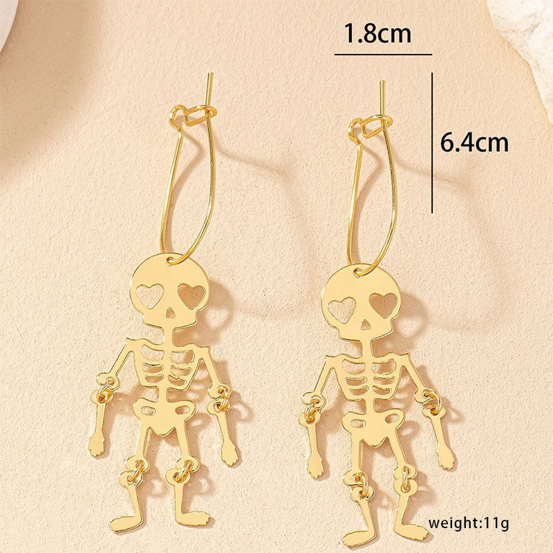 Skull Skeleton Metal Plated Drop Earrings for Halloween