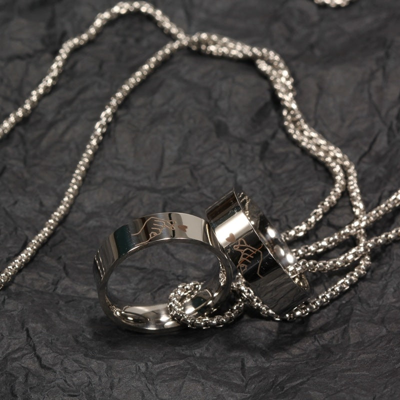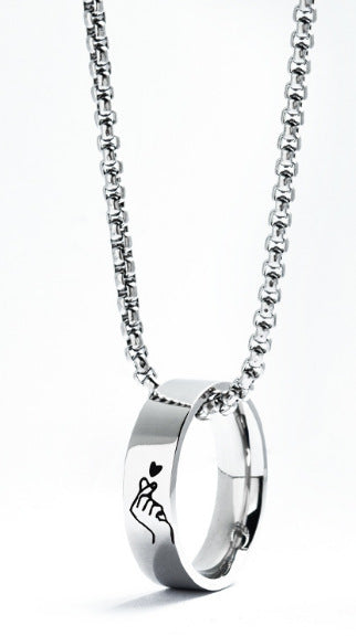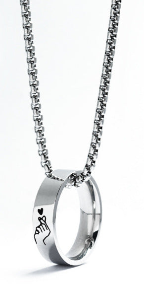 Gold Plated Stainless Steel Circle Necklace with Couple Heart Pendant