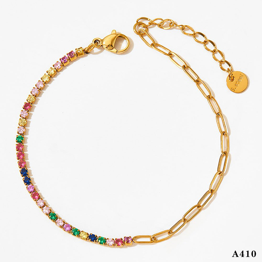 Modern Geometric Zircon Stainless Steel Gold Plated Anklet Bracelet