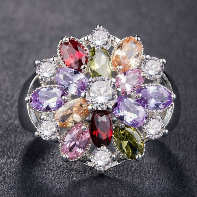 Wholesale Modern Flower Gemstone Silver Plated Party Rings