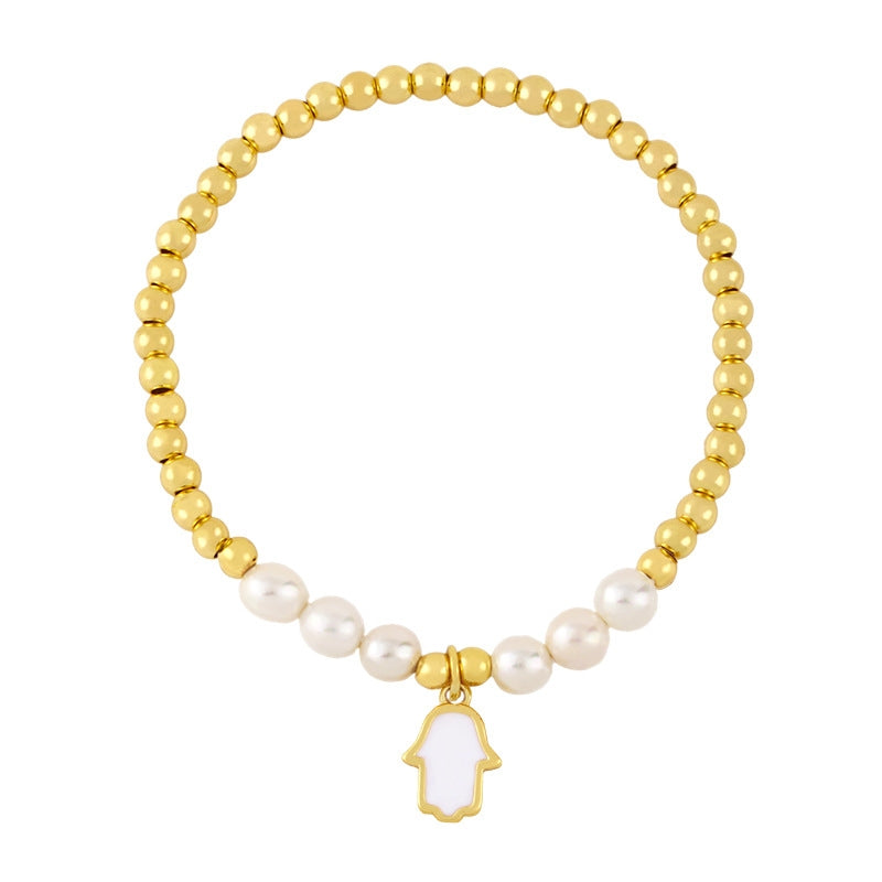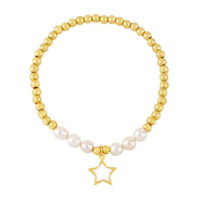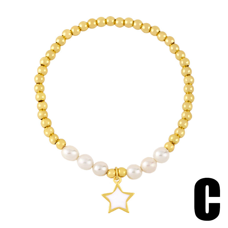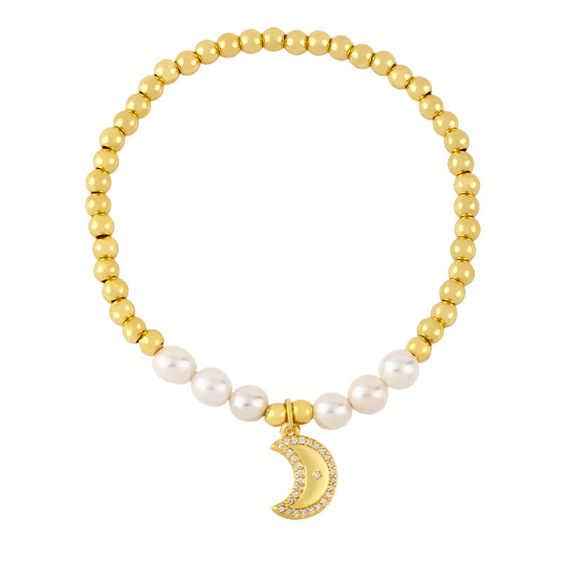 Pearl Beaded Stars and Moon Pendant Copper Bracelet